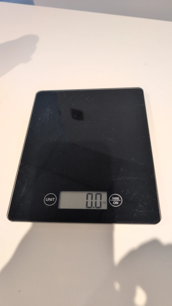 digital kitchen scale in excellent use condition. touch screen buttons are flat so it's easy to clean/wipe. selling because I want an ultra accurate coffee scale. originally from kitchen stuff plus