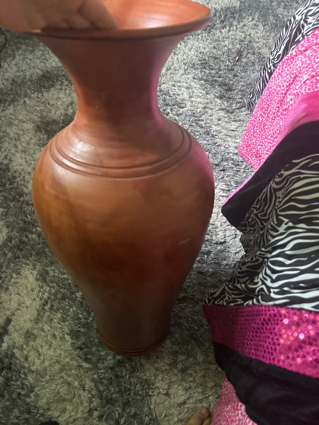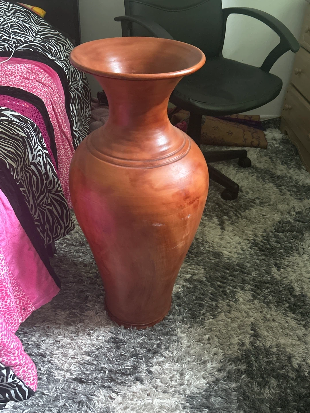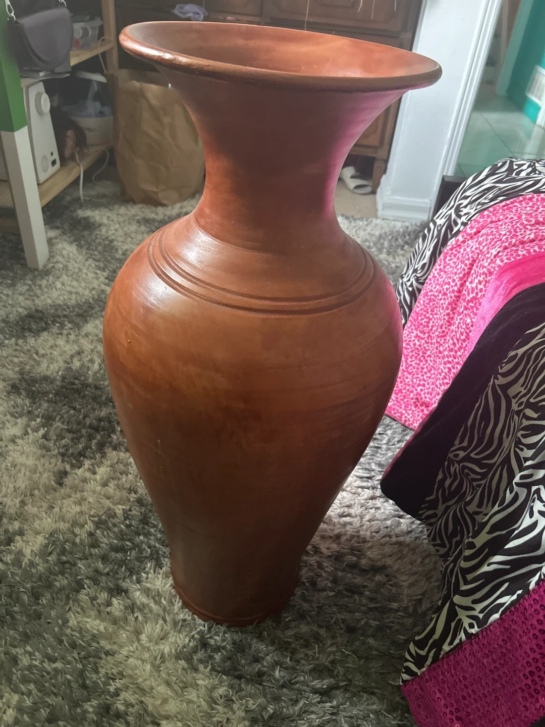 Selling a large brown clay vase, perfect for adding a rustic touch to your home decor. It's in great condition and ready to be filled with your favourite flowers or greenery