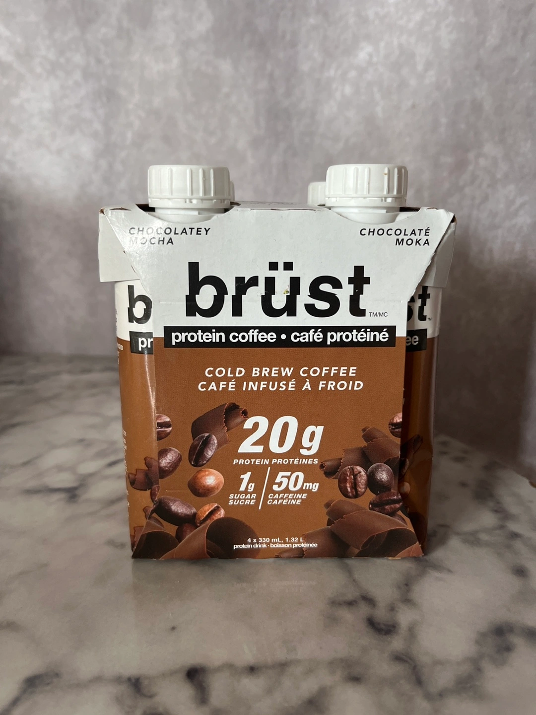 Selling Brüst protein coffee in the Mocha flavour. 7 x 330 ml bottles of cold brew, each bottle has 20g protein - great for a gym day or energy boost to start the morning. (i had one bottle, just wasn’t my thing.)
