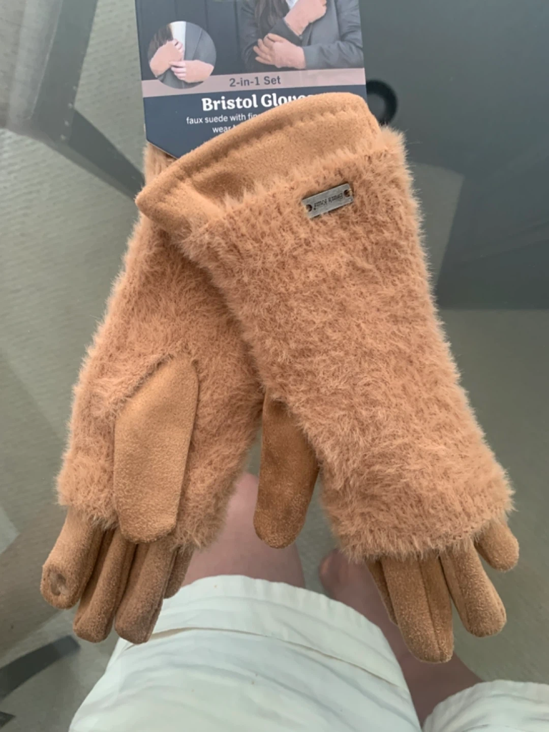Keep your hands cozy with these Britt's Knits Bristol Gloves! They're a 2-in-1 set with faux suede and fingerless feather knit, so you can wear them layered or separately. Perfect for adding a touch of warmth and style to any outfit