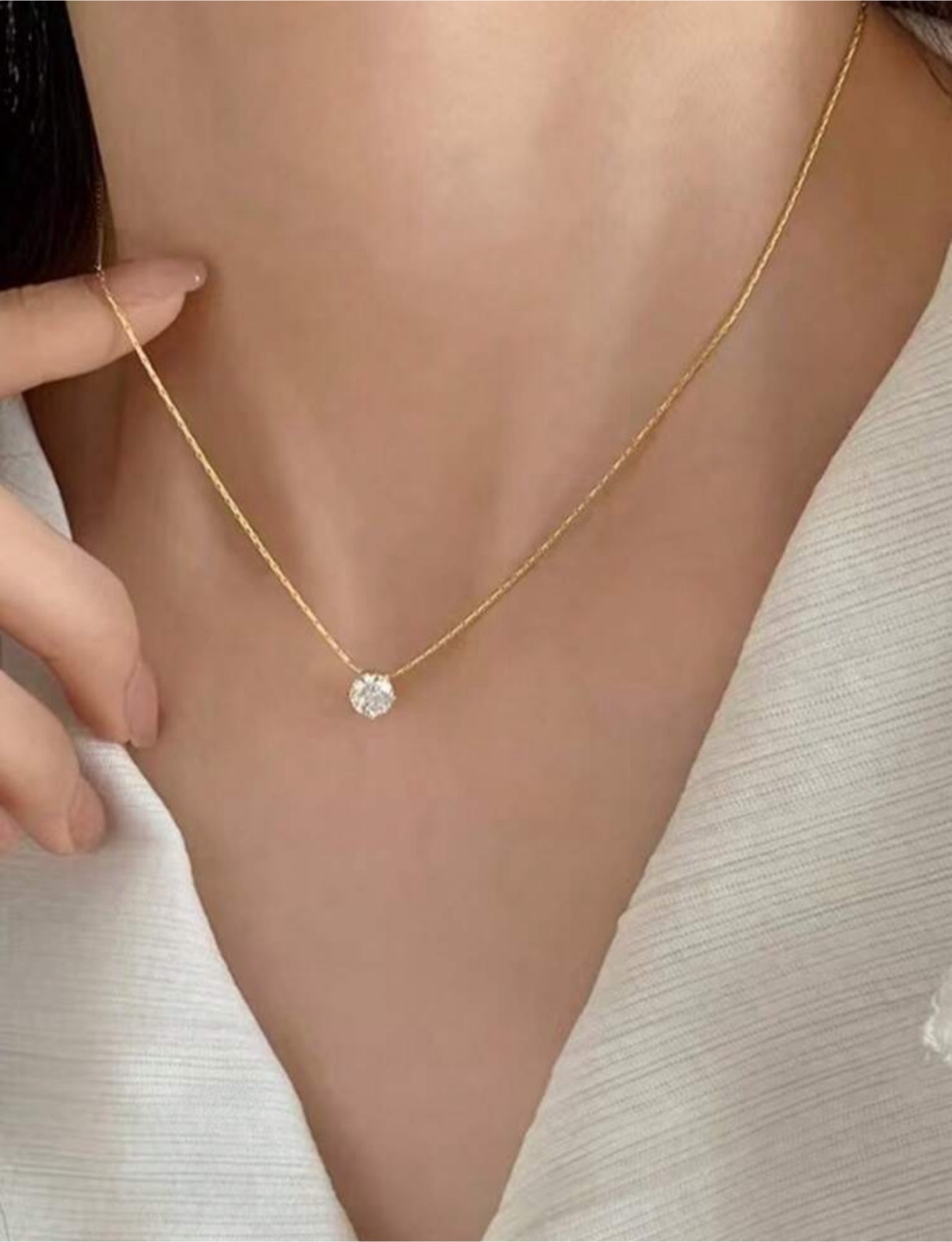 Selling a fashionable necklace with a small cubic zirconia pendant. It's in great condition and perfect for adding a touch of elegance to any outfit