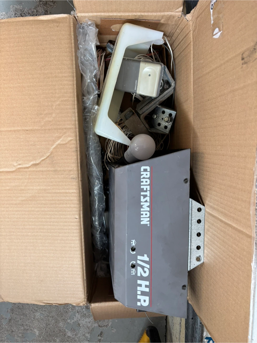 Selling a used Craftsman 1/2 H.P. garage door opener. It comes with all the components shown in the box. Please see the photos for details on the condition and included parts!