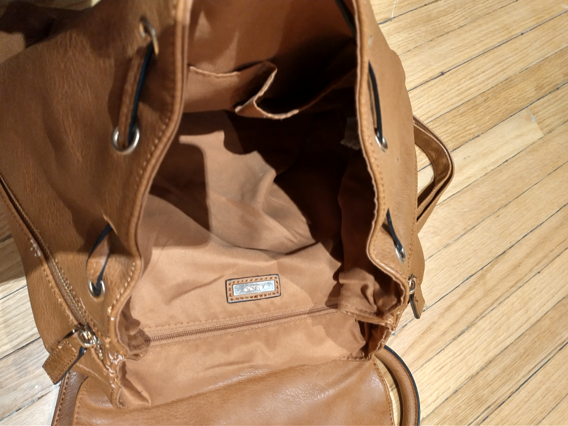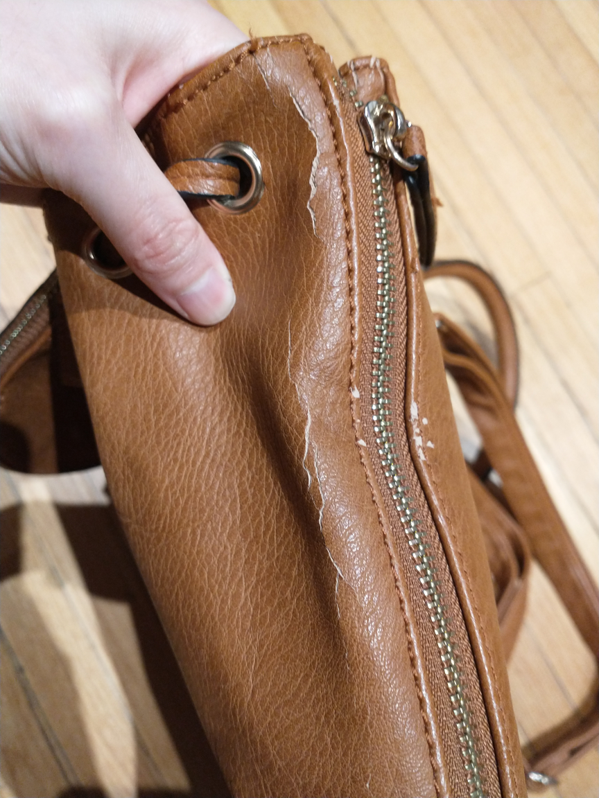 Good condition — one of the loops has fallen off for the handle but the backpack straps are stable, has a bit of cracking but not very noticeable