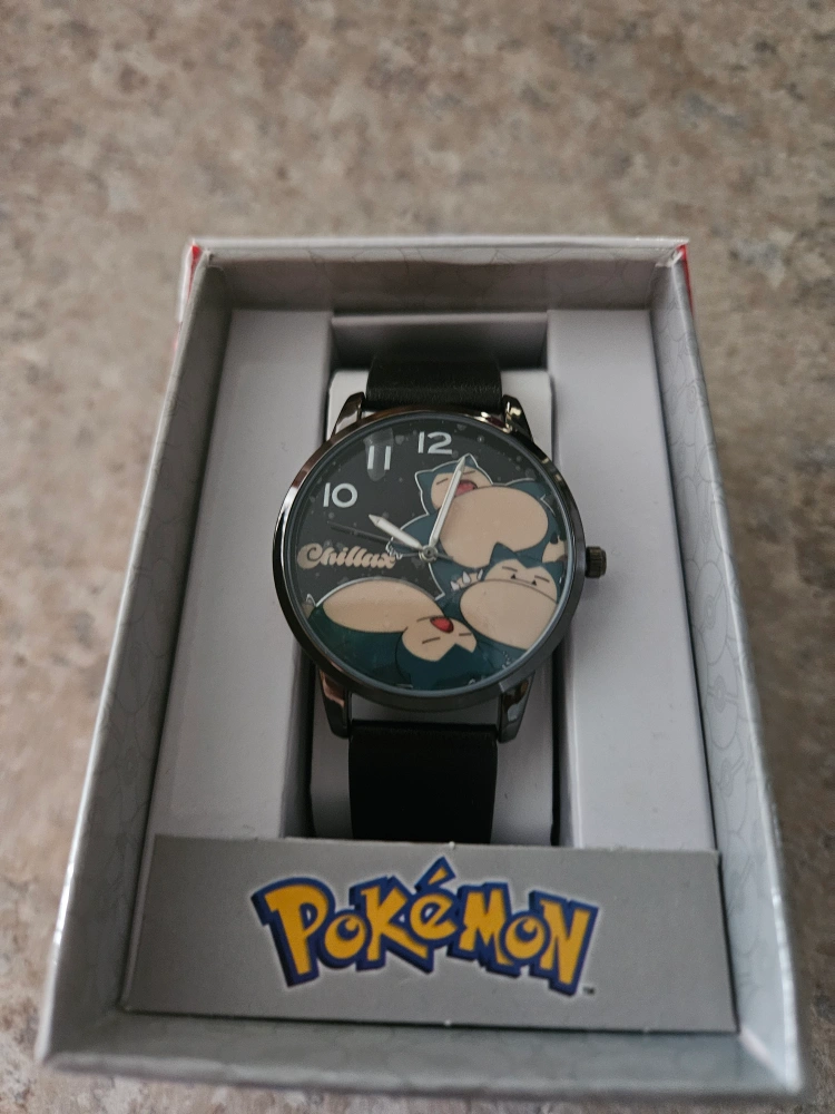 Check out this adorable Pokémon Snorlax wrist watch! It's brand new and comes in its original box, perfect for any Pokémon fan. The watch features a fun Snorlax design on the face. It's a great accessory to show off your love for Pokémon!