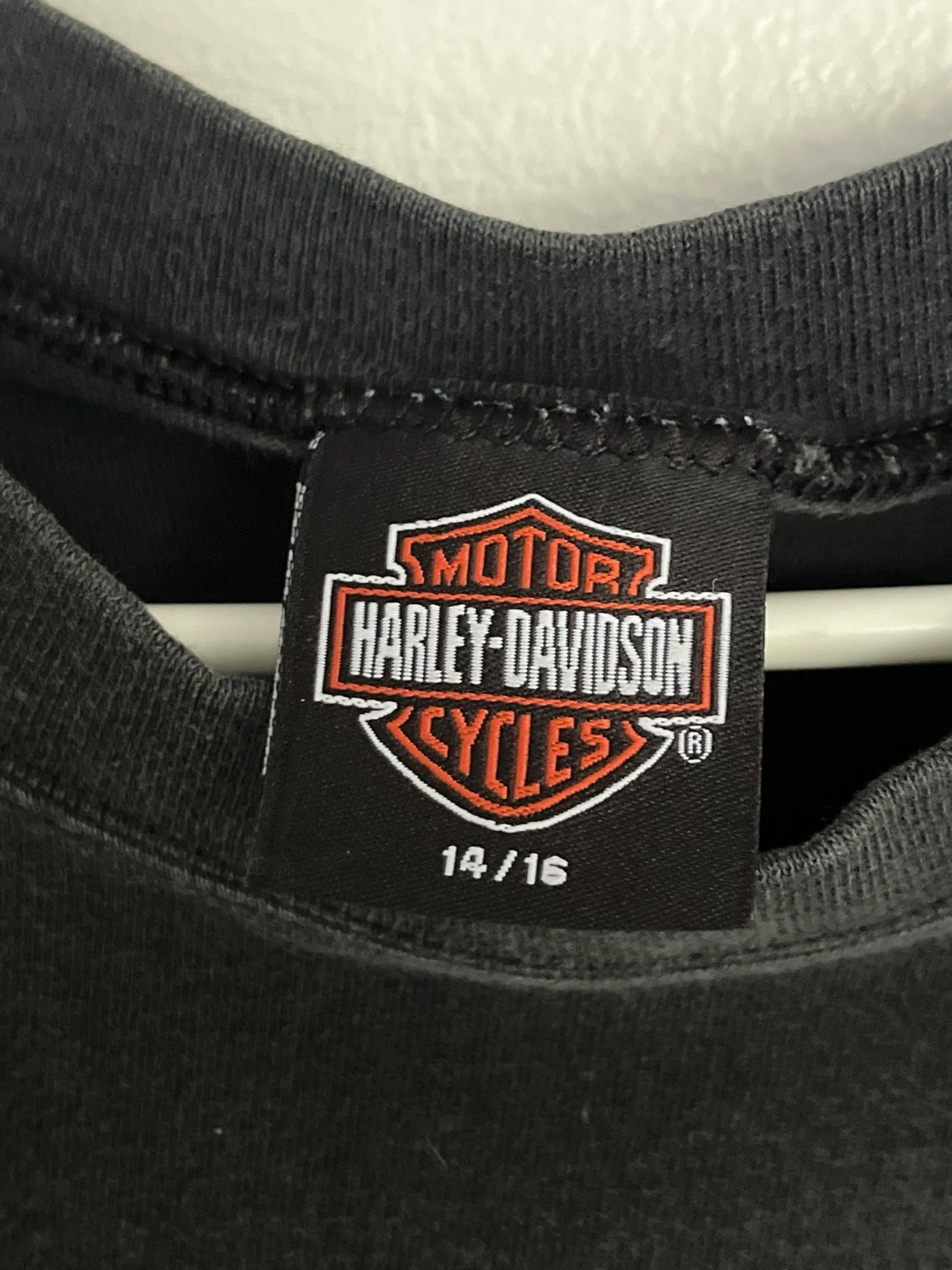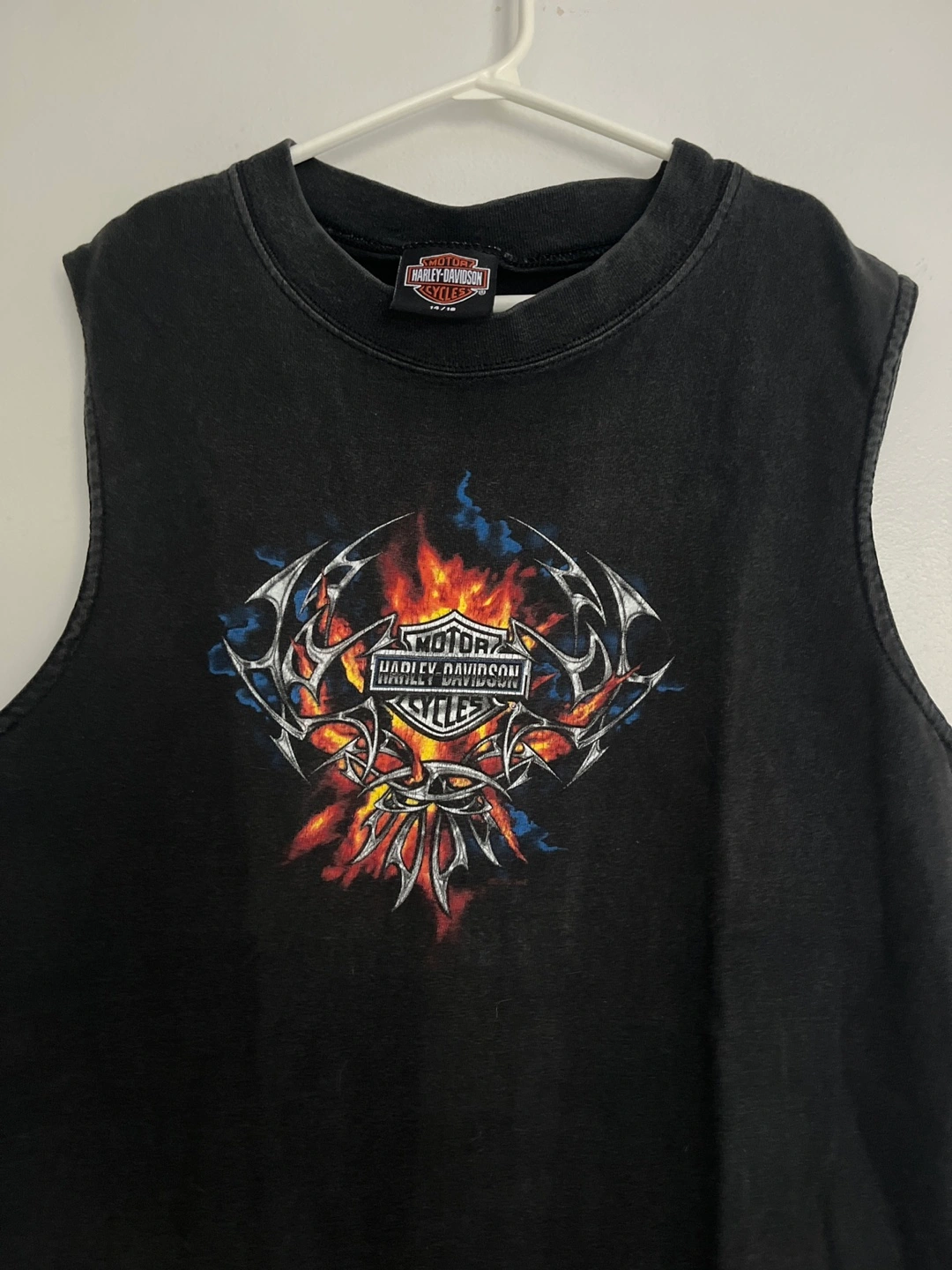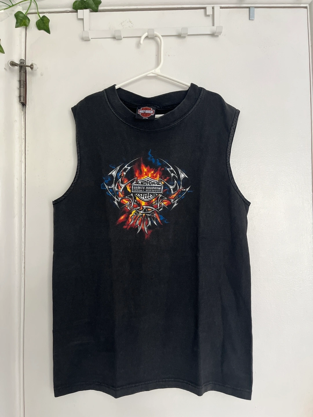 Selling a Harley-Davidson sleeveless top. It's a size 14/16 and features the classic Harley-Davidson Cycles logo. The graphic is slightly unaligned as shown in pictures