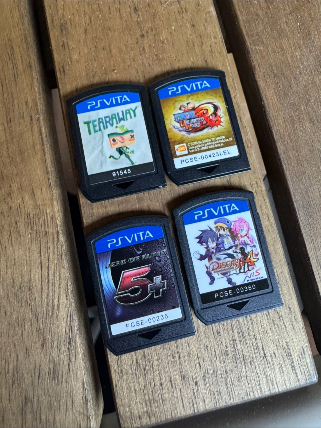 PlayStation Vita Games For Sale! Take all 4 for $100 Tearaway - $20 One piece ultimate world red - $20 Dead or Alive 5+ - $50 Disgea 4 - $30