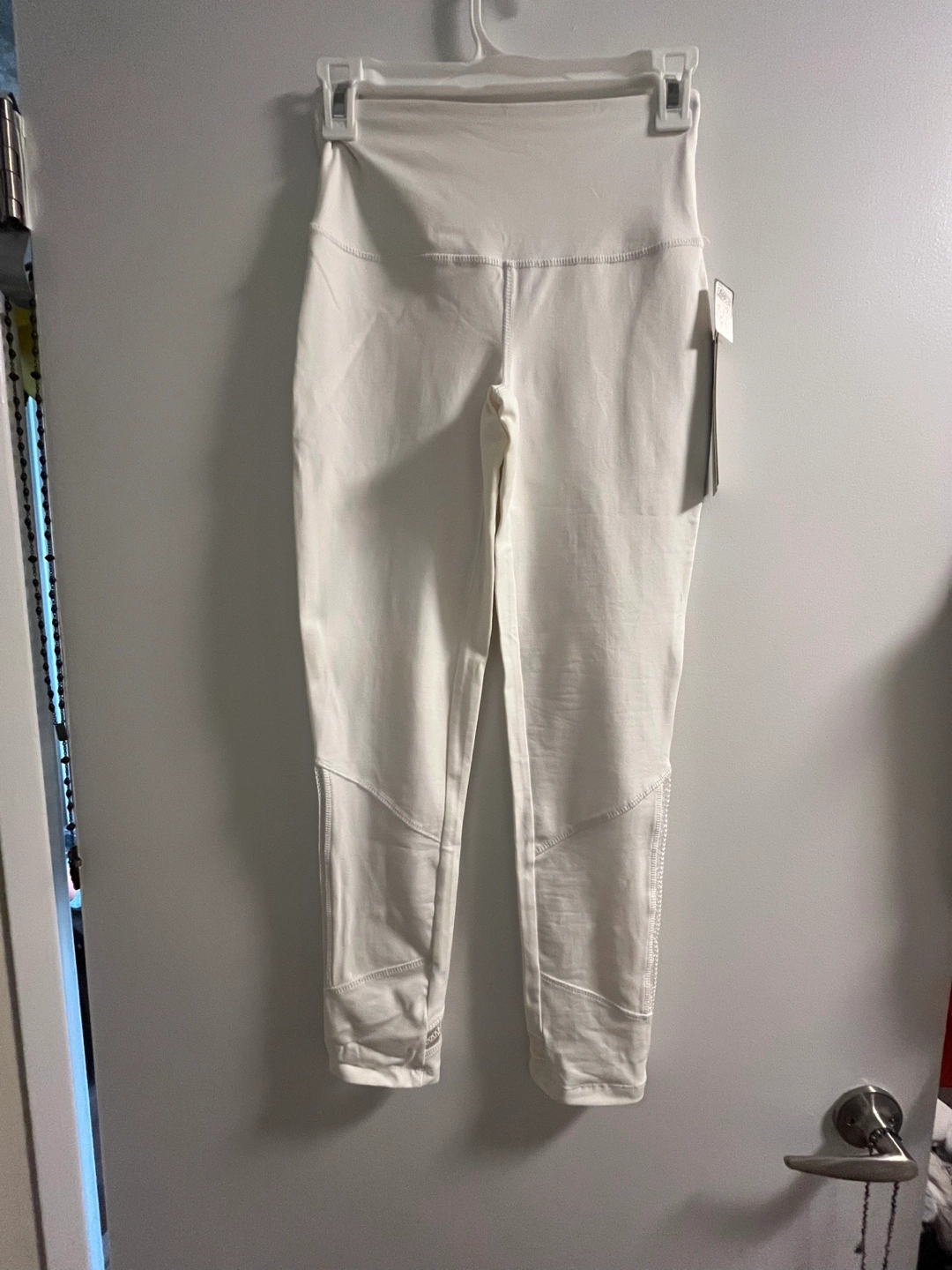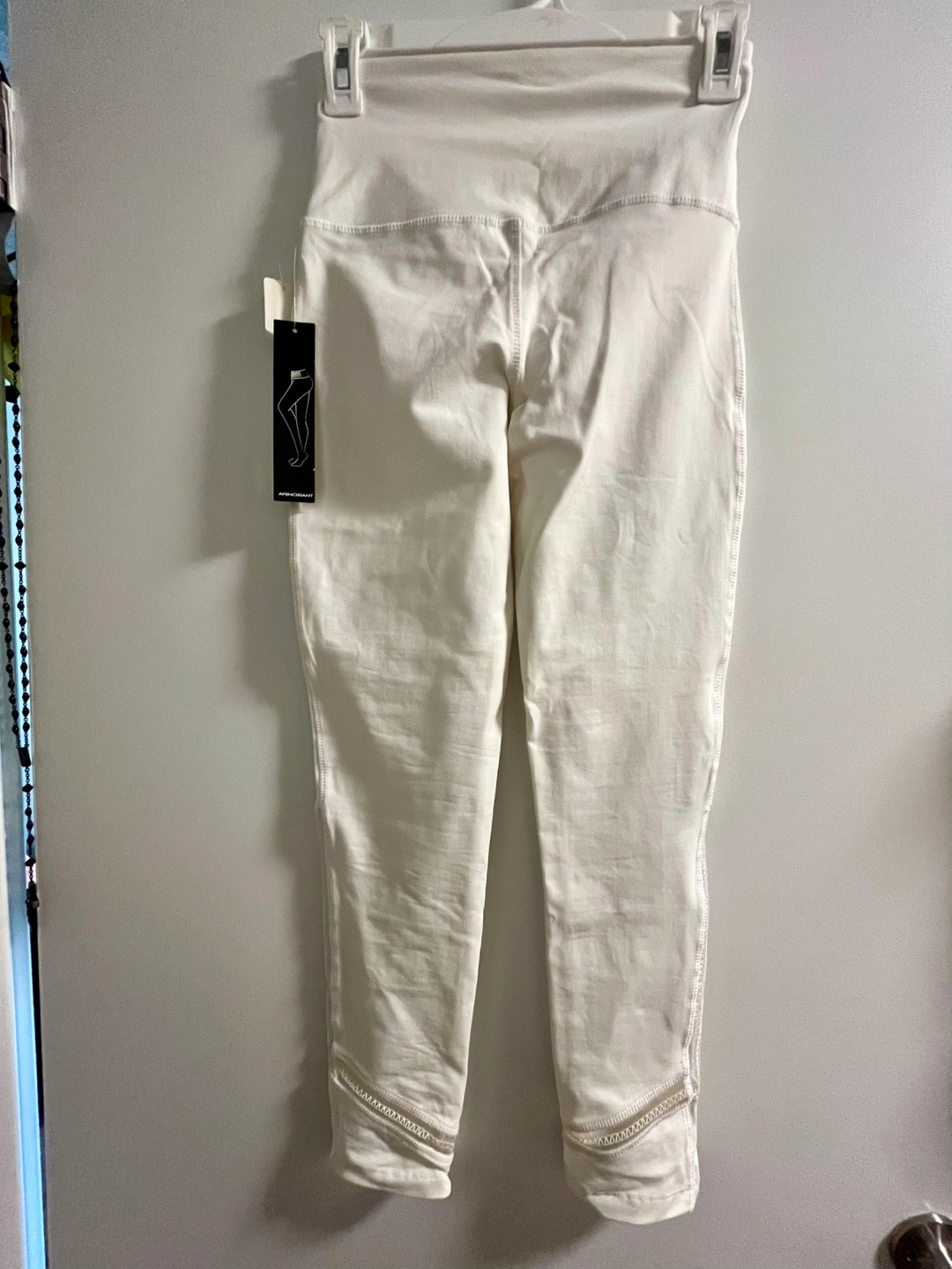 These are a pair of Tribal leggings in size XS. They are white and have a stylish design at the ankles. The style number is 33630-5303. Originally bought for $75 plus tax Pickup downtown and cash only accepted!