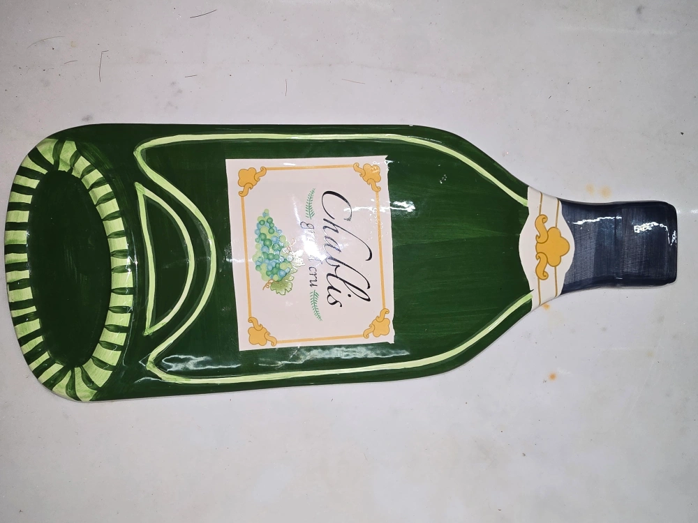 This is a lovely Chablis Grand Cru wine bottle shaped trivet It's perfect for adding a touch of French country charm to your home decor. It is in good condition and ready to be used for for heat protection from newly cooked and hot dishes on the table or displaying as a decorative item.