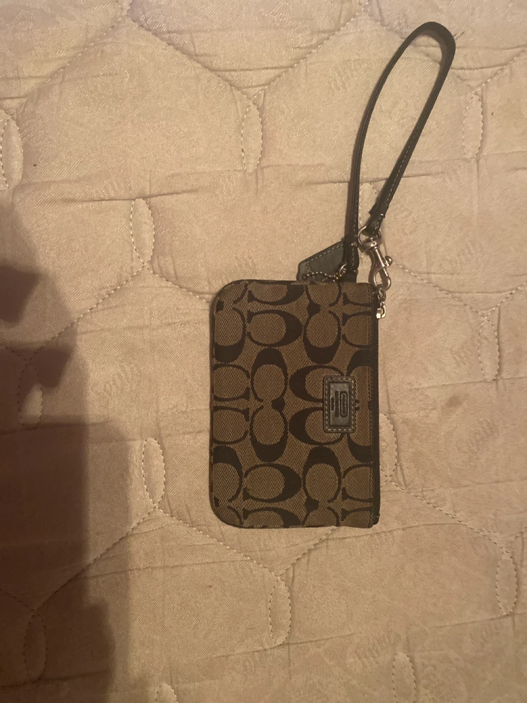 149Selling a Coach wristlet. It features the signature Coach pattern in brown tones. Perfect for carrying your essentials!