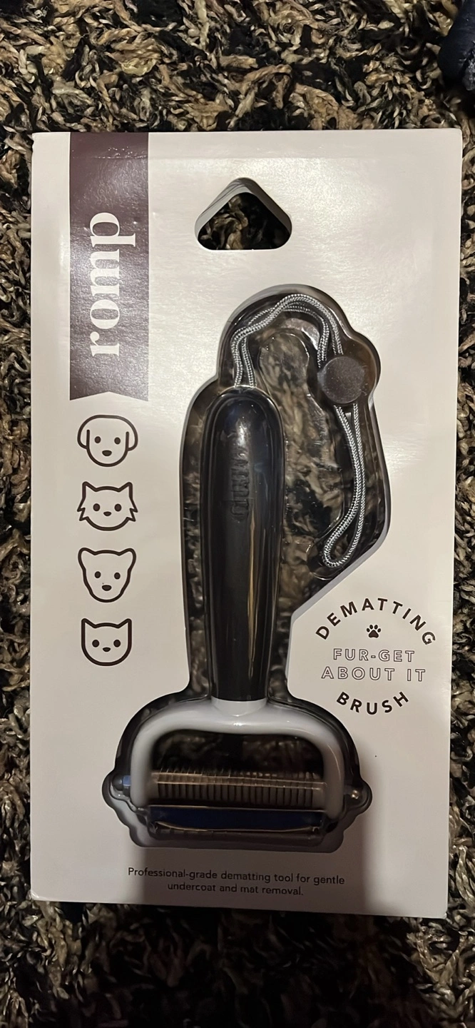 I'm selling a romp Dematting Fur-get About It Brush! It's a professional-grade dematting tool for gentle undercoat and mat removal.