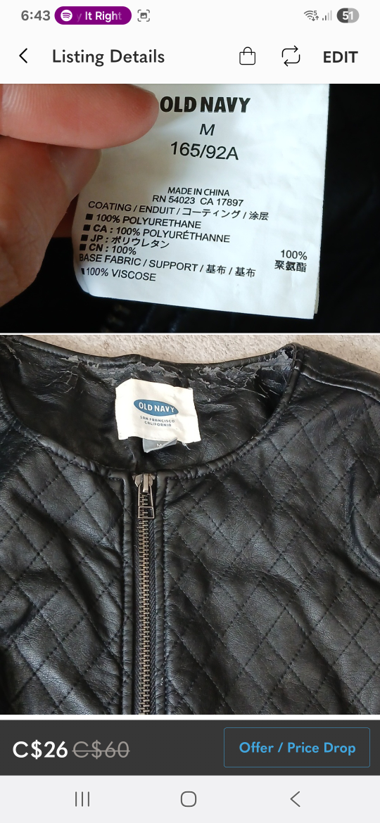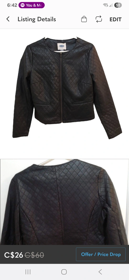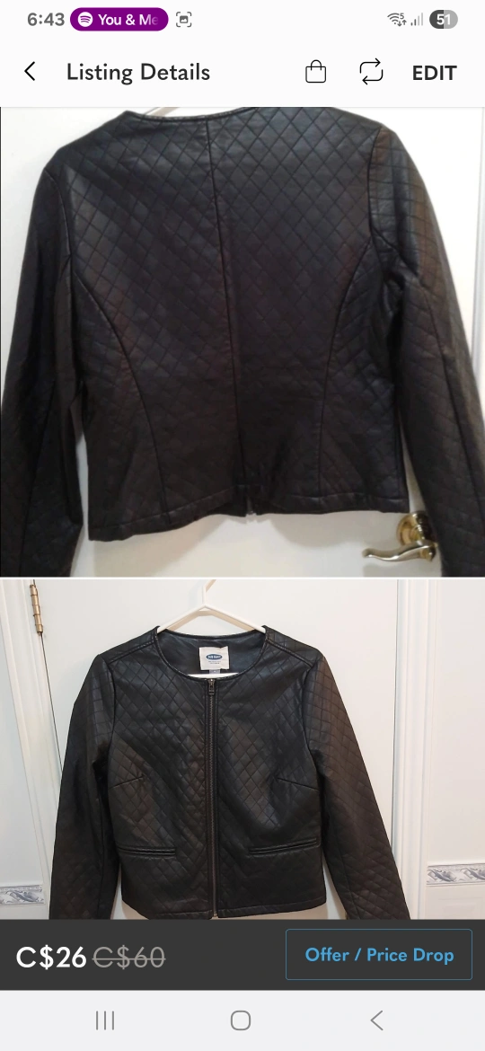 🥕#freecycle Old Navy black diamond quilted zip up jacket, M