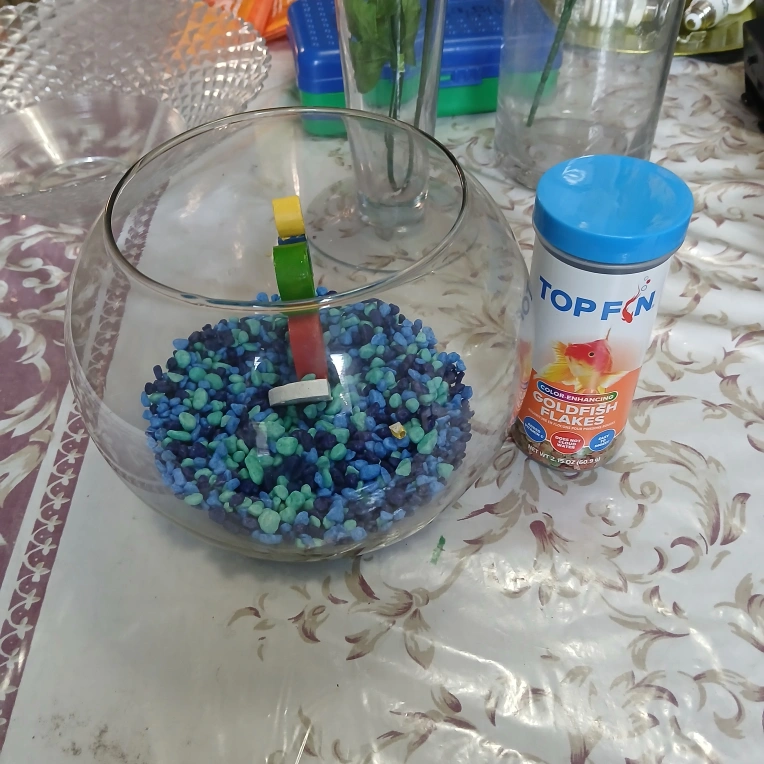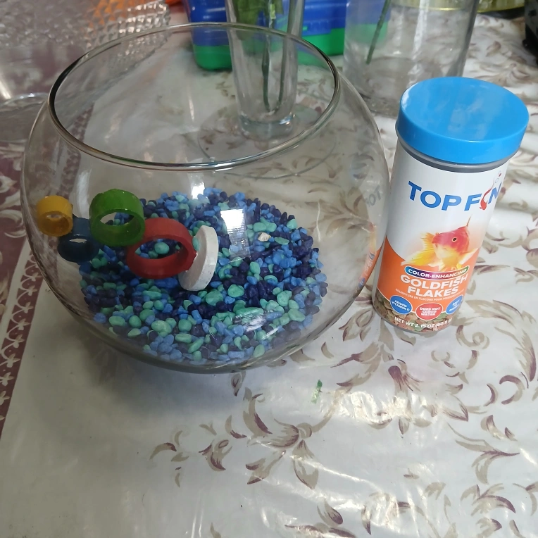 Fish Bowl with Gravel & Top Fin Goldfish Flakes