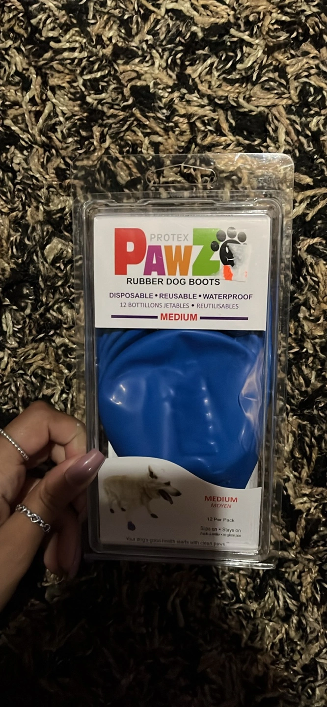 Keep your furry friend's paws protected with these Pawz rubber dog boots! These are disposable, reusable, and waterproof, perfect for any weather. They're size medium, great for dogs like American Eskimos, Cocker Spaniels, and more. Each pack contains 8 boots to keep your dog's paws clean and safe!