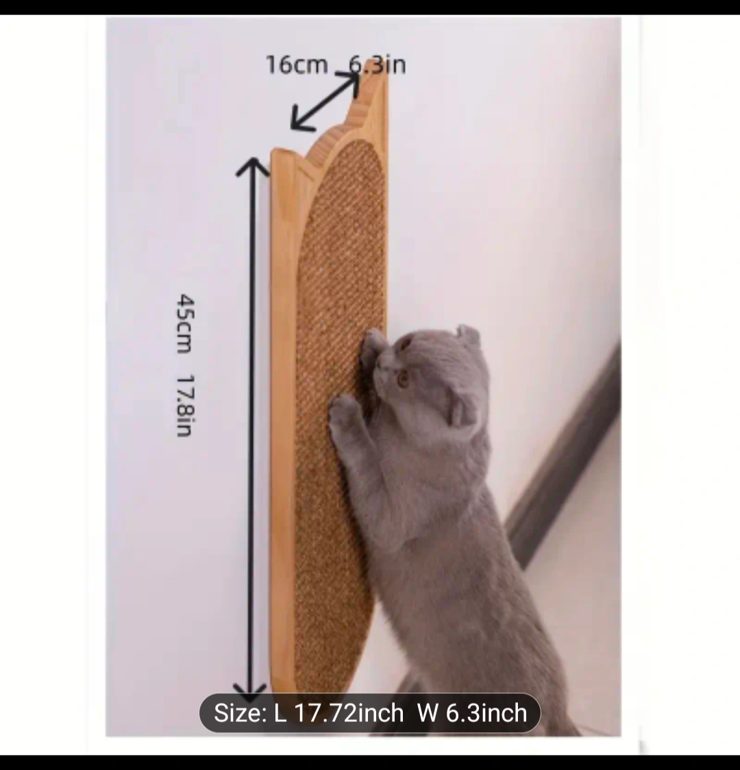 Selling a wall-mounted cat scratching post. It's in great shape and ready for a new home. It was never attached to the wall and I had hoped he would use it on the floor or propped against the couch.It has never been used. The dimensions are approximately 17.8 inches in length and 6.3 inches in width. I paid $22.90 but am asking $10. It's well built. Wood with the sisal fabric on front for scratching. Pick up only, in Beltline. FCFS. Cash. I'm flexible on p/u times but please don't No Show.