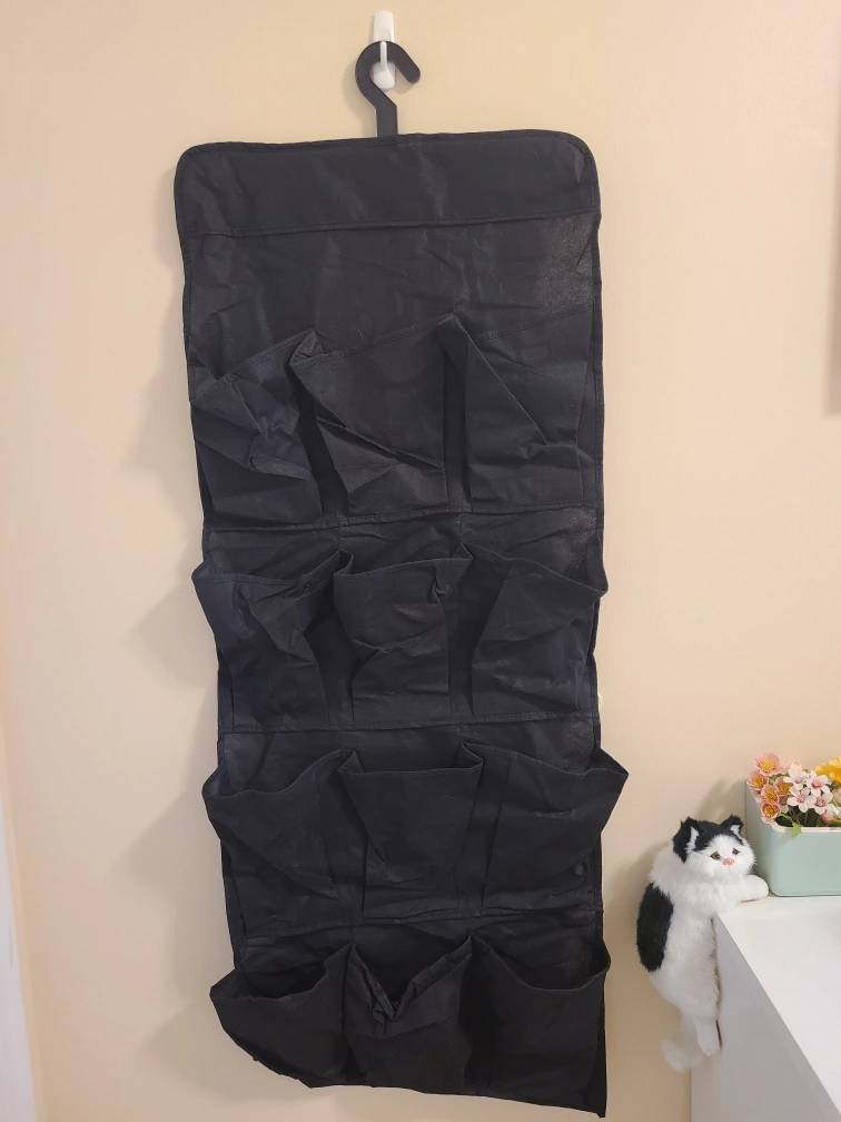 Giving away this black over-the-door hanging organizer! It's perfect for keeping things tidy and out of the way. Great for shoes, accessories, or anything else you need to store.