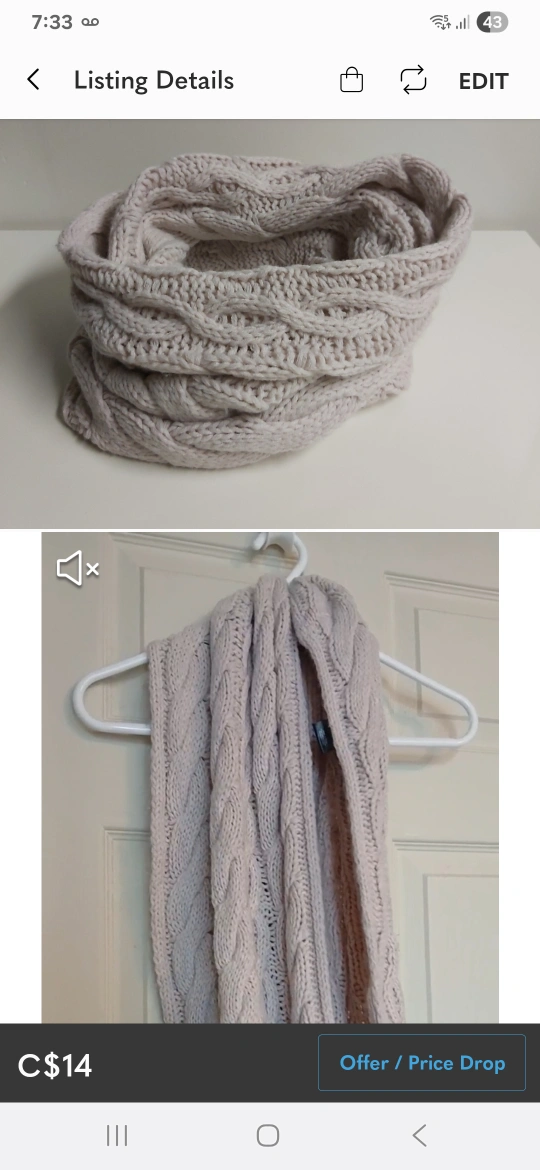 Type: A cute long foldable infinity scarf. Very comfortable and warm!