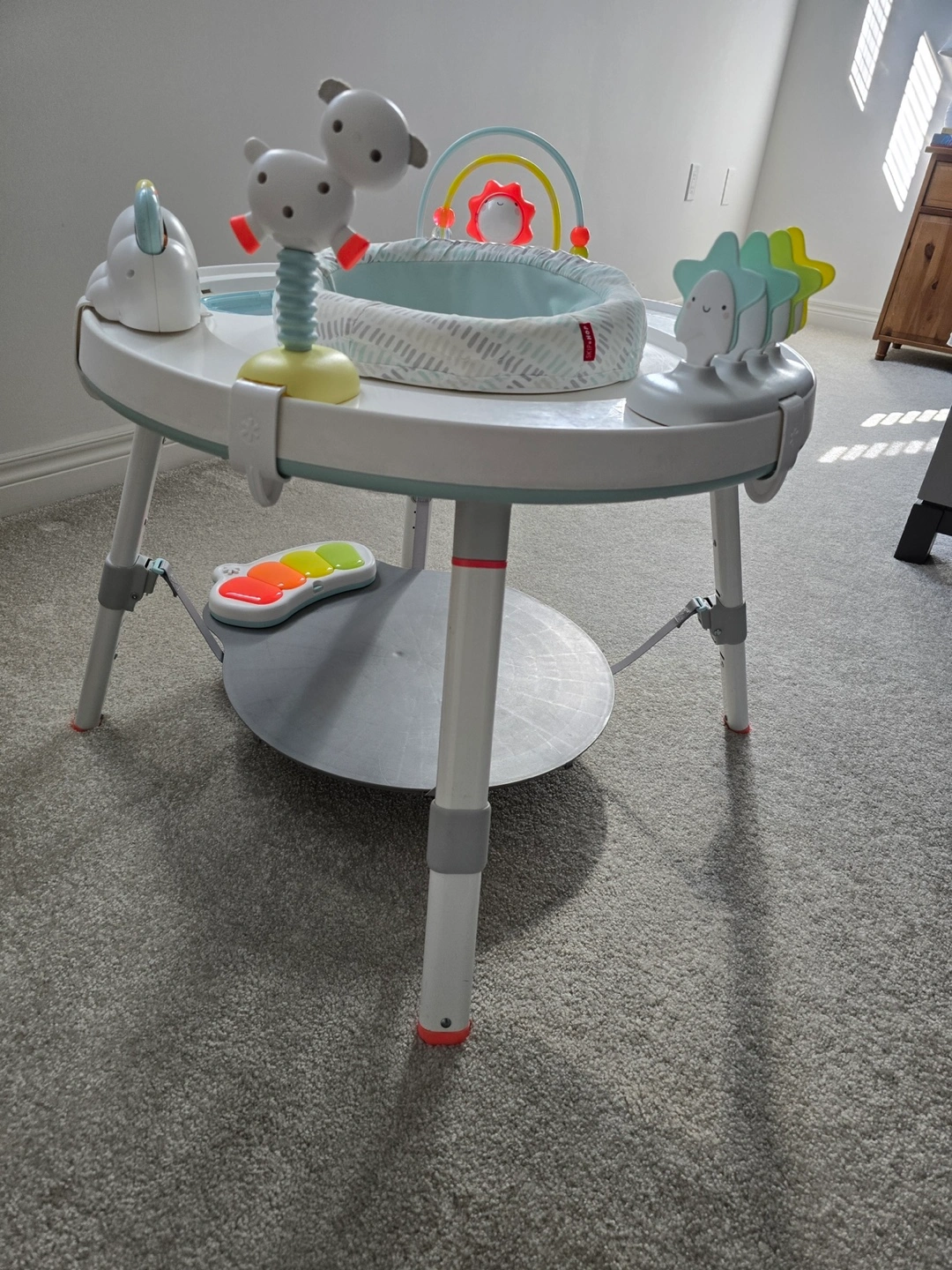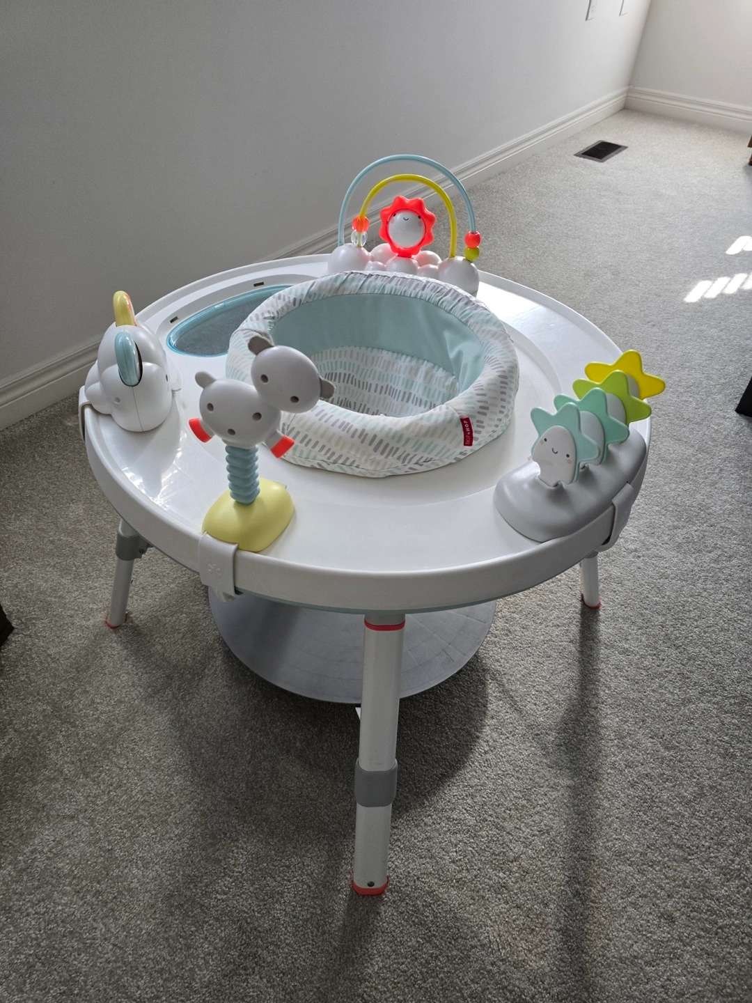 Selling a gently used Skip Hop Explore & More Jumpscape Activity Center! It's in great condition and ready for a new little one to enjoy. This activity center is designed to grow with your baby through different stages of development. It features a variety of engaging toys and activities to stimulate your baby's senses and encourage exploration. Perfect for babies who are starting to sit up and explore the world around them!