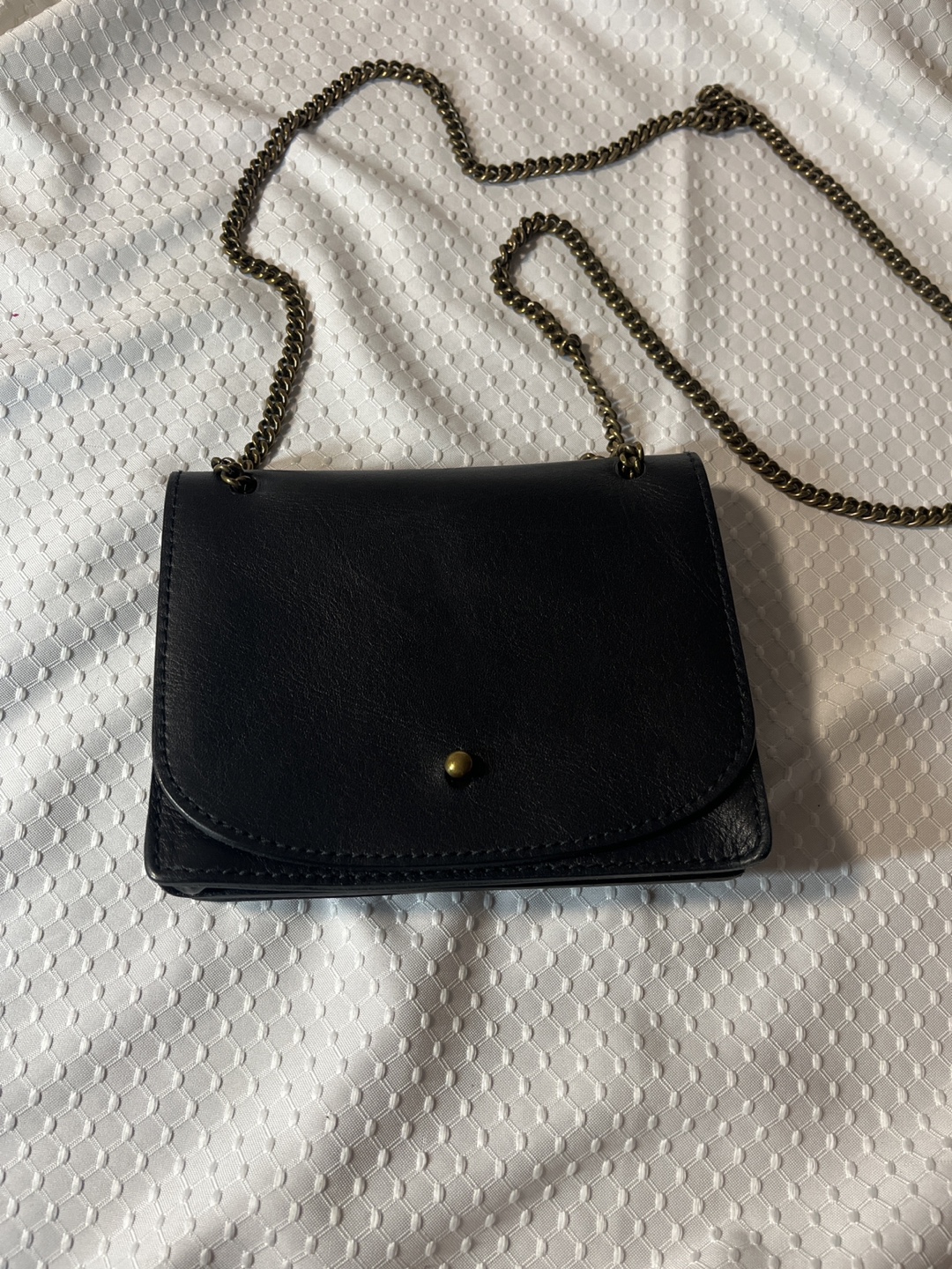 Selling a stylish black chain crossbody bag! It's in great condition and perfect for carrying your essentials. The chain adds a touch of elegance, making it suitable for both casual and dressy occasions
