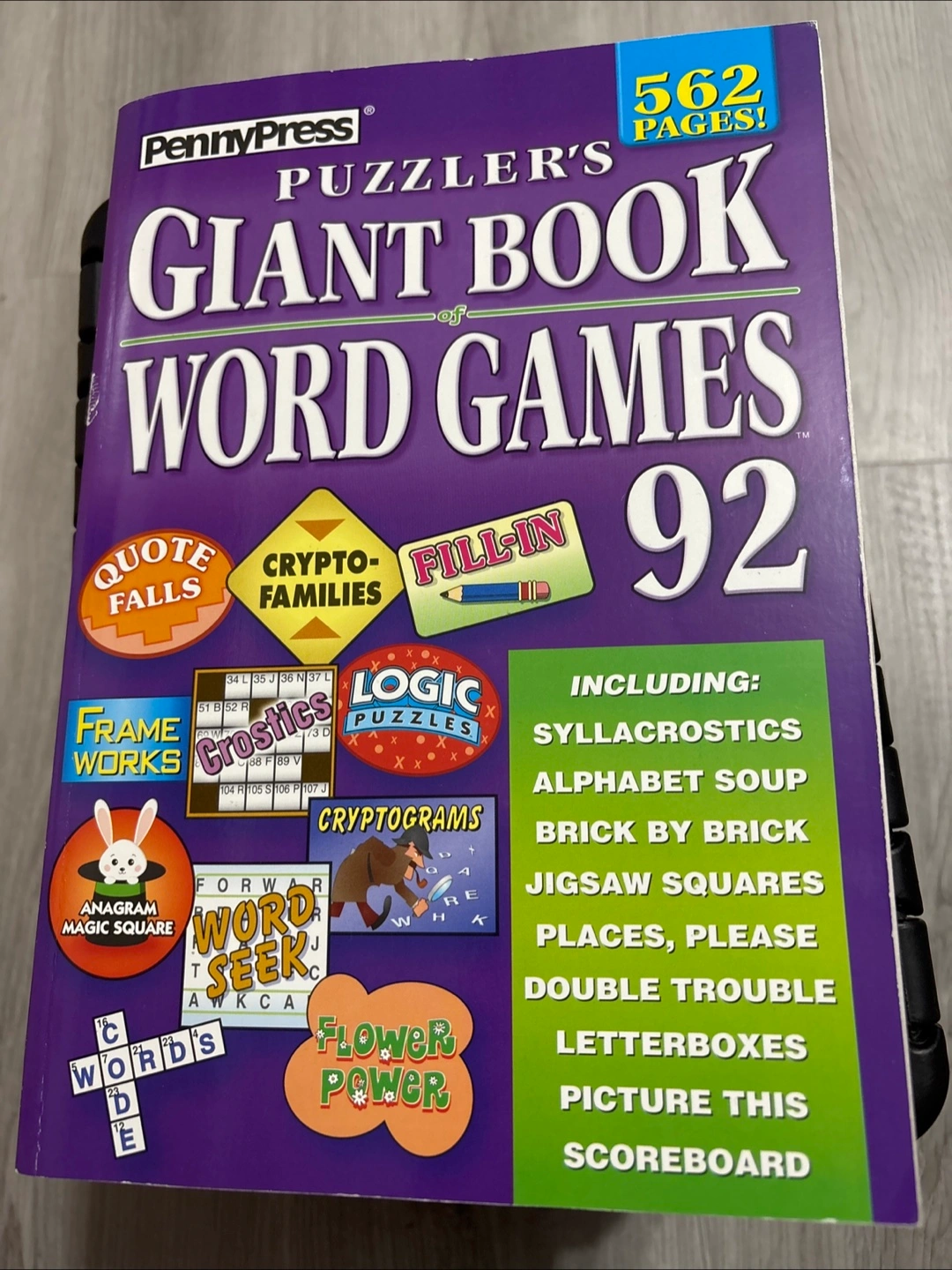 Selling a PennyPress Puzzler's Giant Book of Word Games! It contains 562 pages of your favourite puzzles. This book is perfect for hours of entertainment and mental stimulation.