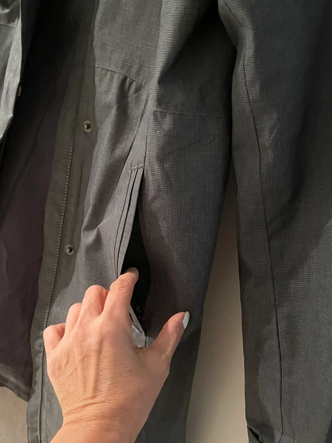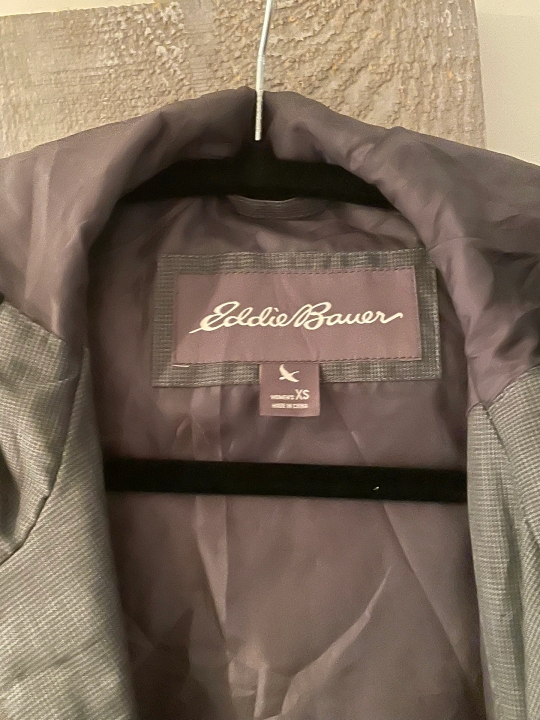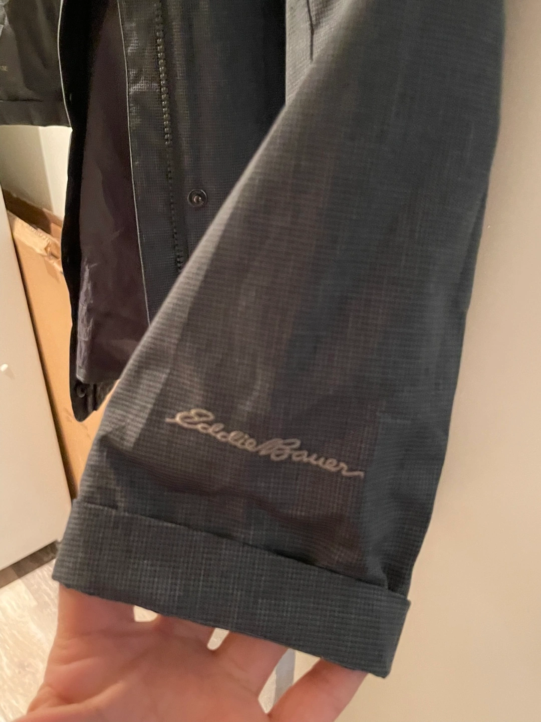 Selling a gently used Eddie Bauer rain coat in women's size XS. It's a stylish grey colour and perfect for those rainy days! Has a hood and lots of pockets