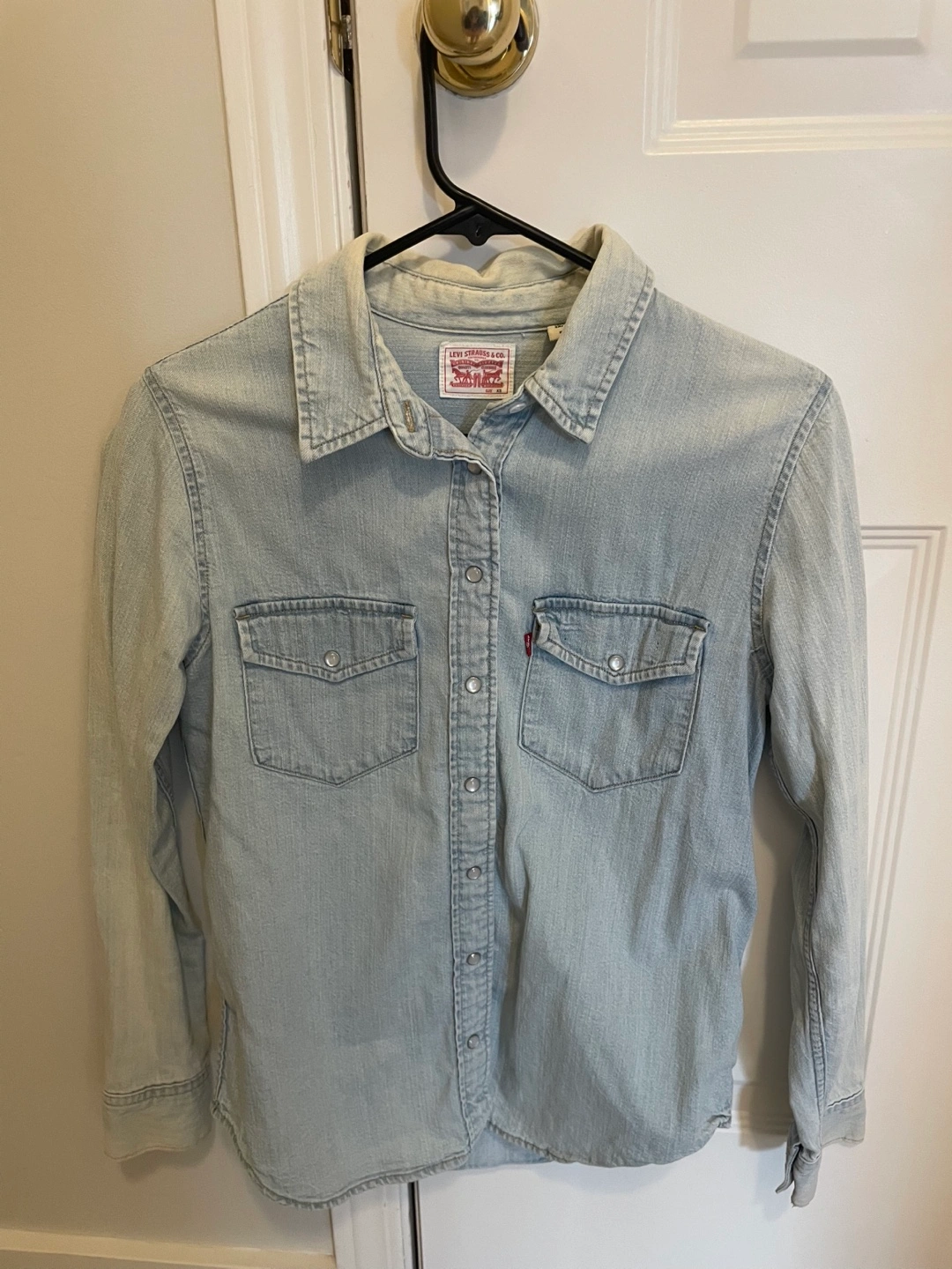 55Levi's denim Western shirt in size XS. It's a light wash denim and in great condition. Perfect for layering or wearing on its own!