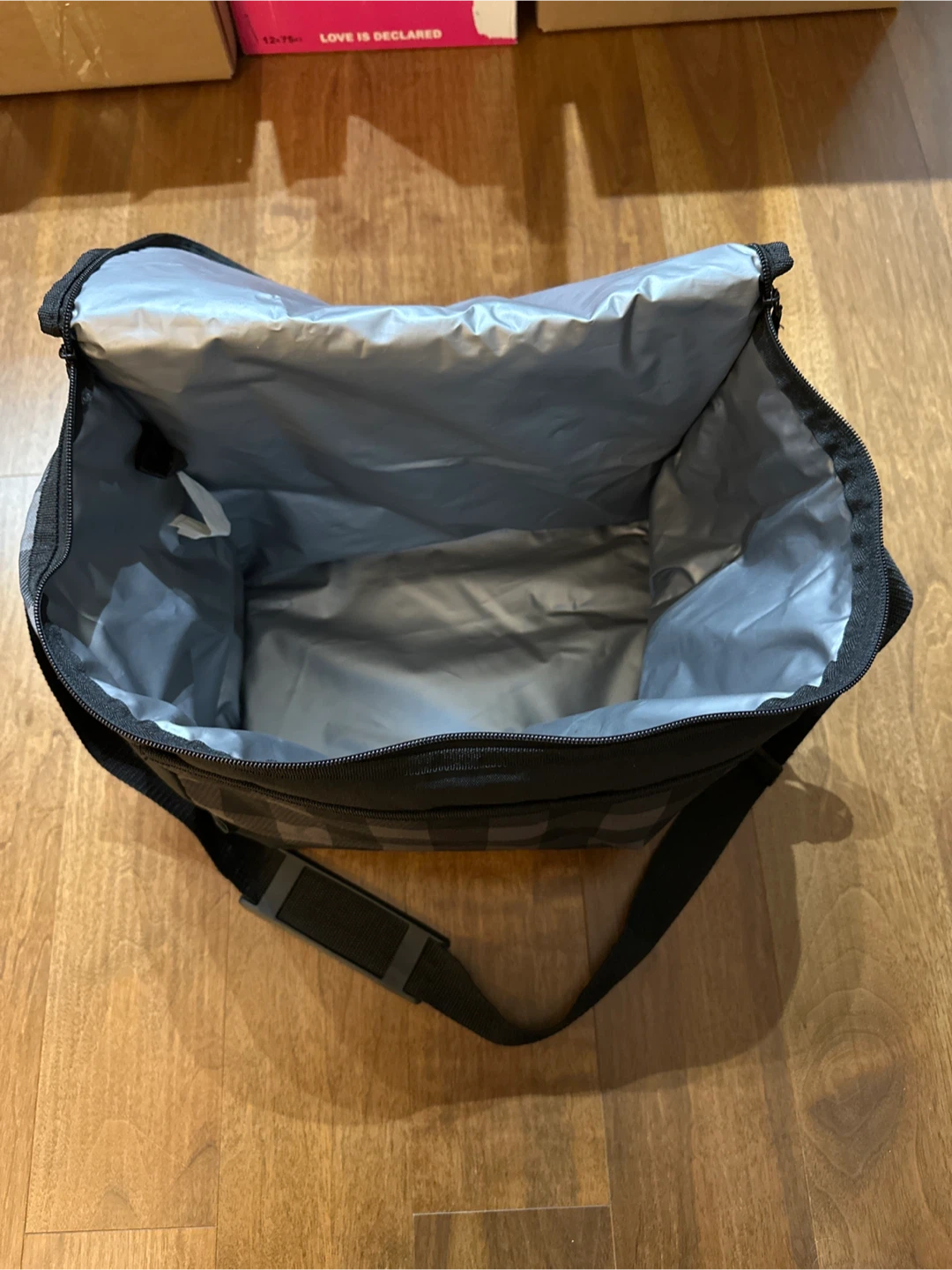 Adjustable shoulder strap, double zipper with side pocket for extra storage