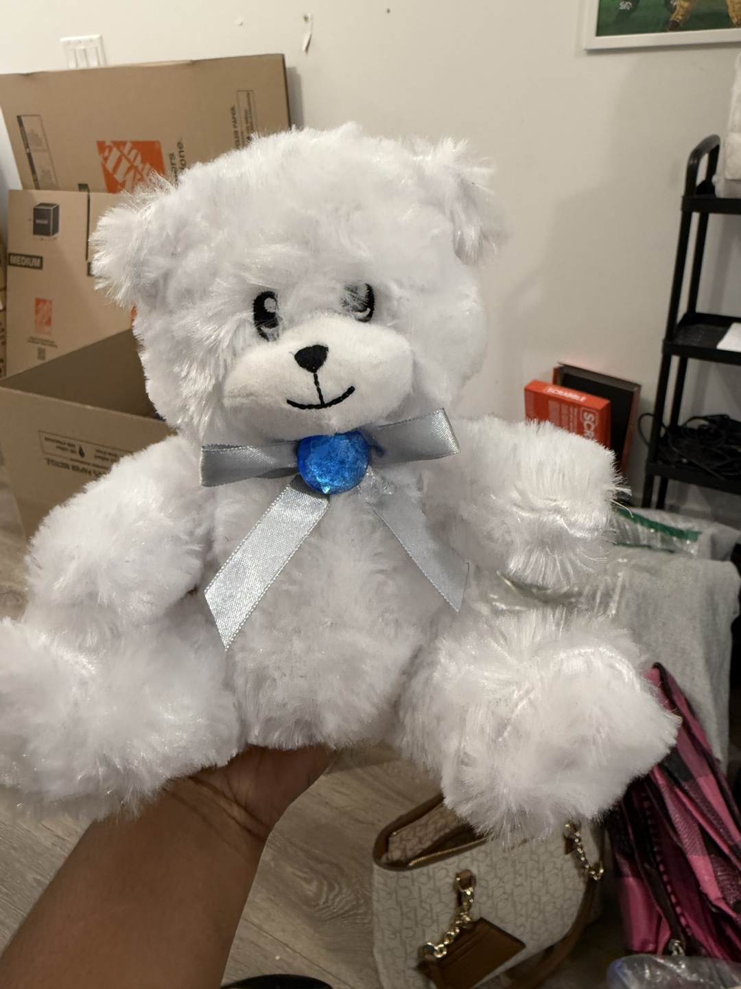 Giving out a cute white teddy bear! It's in great condition and ready for a new home. Perfect for kids or as a cuddly companion