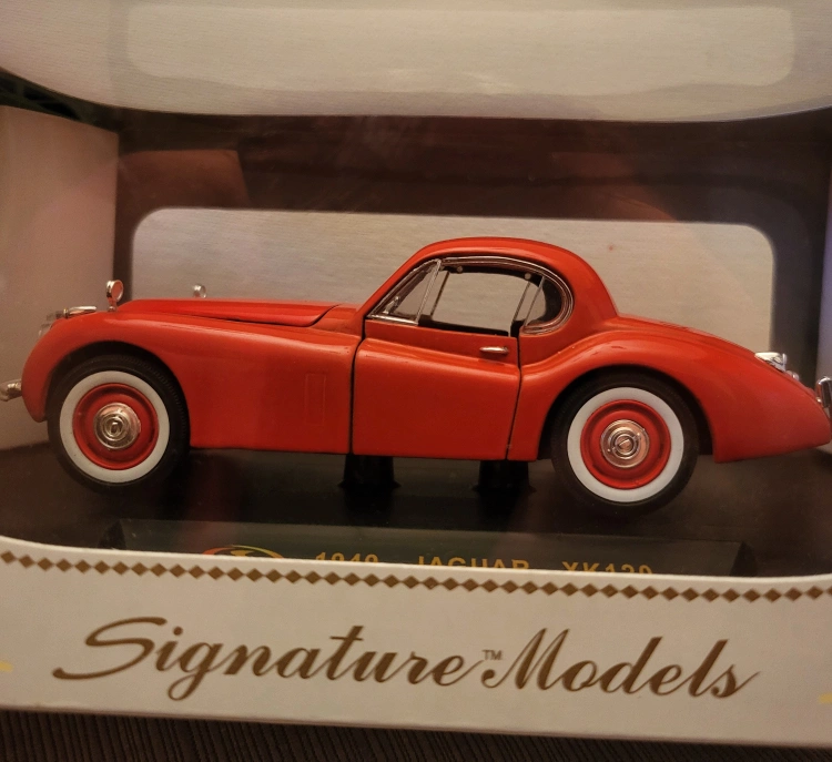 134Selling a Signature Models 1949 Jaguar XK120 diecast model car. It's a beautiful red colour and comes in its original box. A great addition to any car collection!