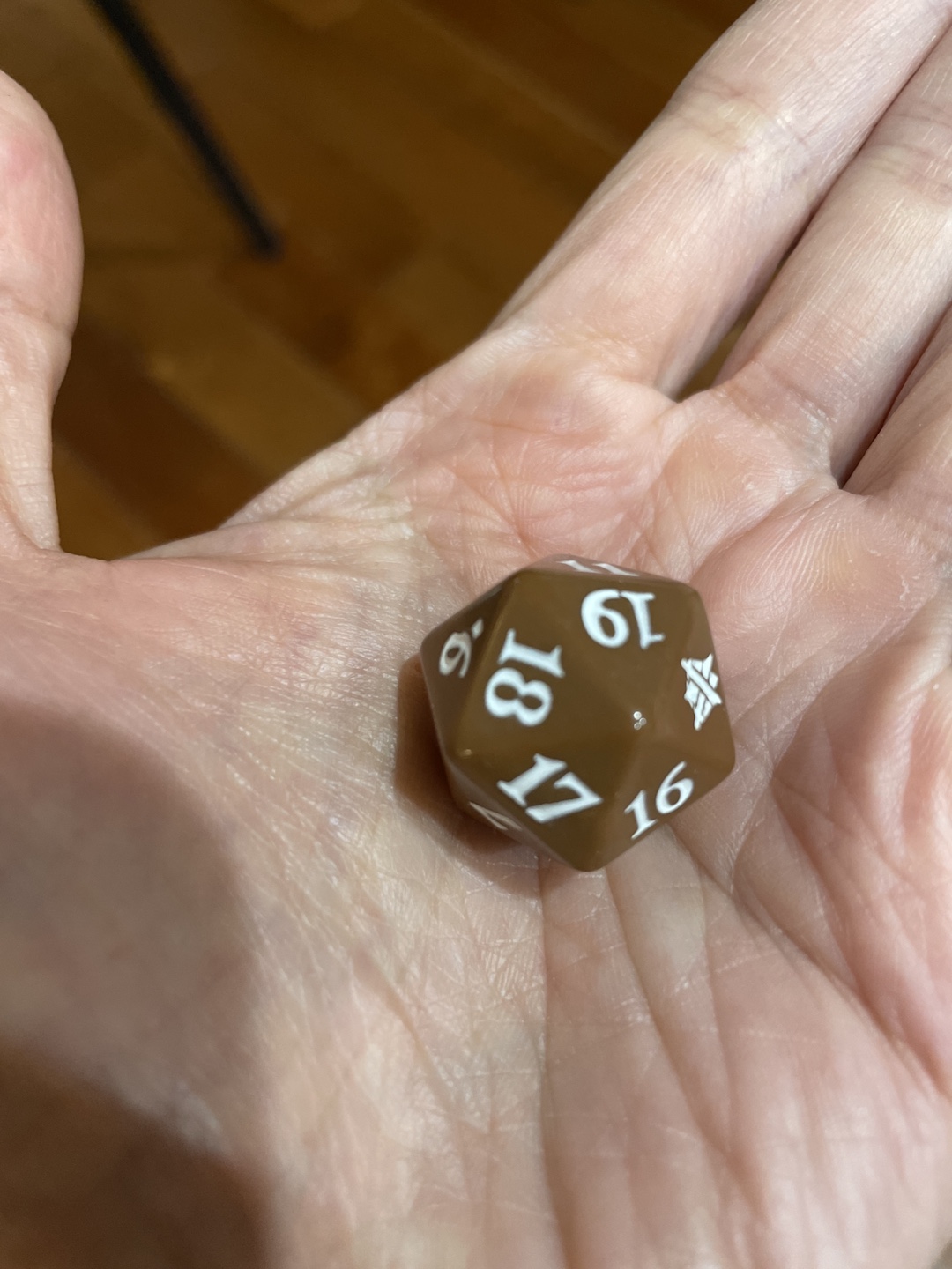 1 / 11 / 1Buy & SellBrown D20 DiceBrown D20 DiceFreeSelling a brown D20 dice. It has white numbers and a symbol on the 20 side. Perfect for your next Dungeons and Dragons game!WHERE TO MEETKensingtonView MapSELLERverifiedHienBloor Annex24519 reviews1 chats·1 favorites·26 viewsSEND CHAT TO SELLERHi Hien! I’m interested in your listing.Hi Hien! I’m interested in your listing.Get the Karrot app to chatSign In to chat