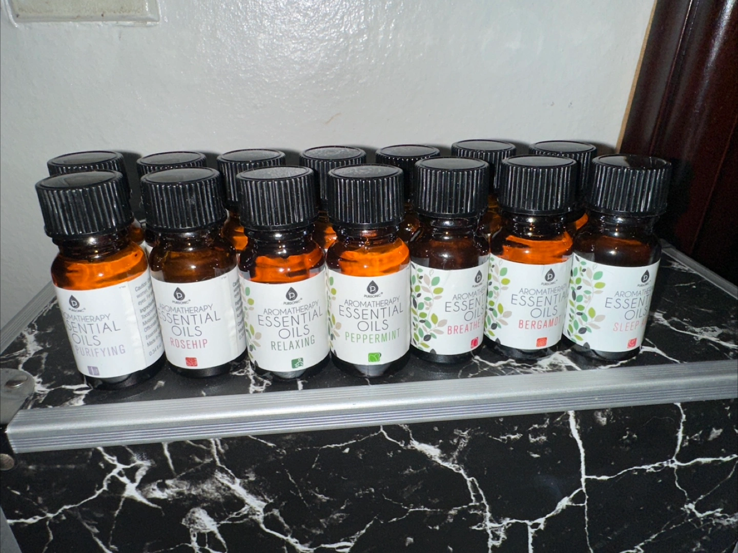 Free set (14 oils) of aromatherapy essential oils. The set includes a variety of scents like Rosehip, Peppermint and Bergamot perfect for creating a relaxing atmosphere!