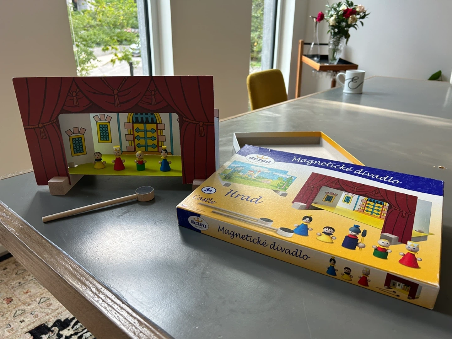Selling a gently used Magnetic Theatre set, featuring a charming castle backdrop! The set is complete and includes the theatre itself, magnetic wands, and wooden characters.