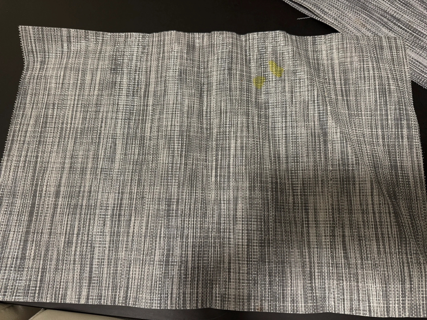 Here' are 5 plate mates of patterned fabric. It has a woven texture with a grey and white colour scheme. There is a small stain on the fabric.