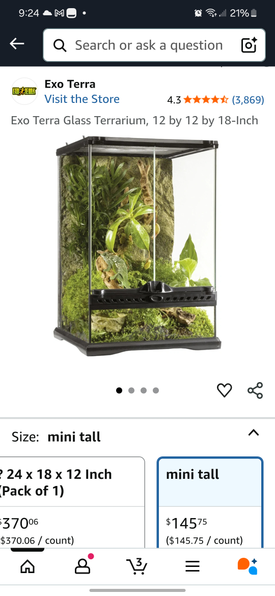 - Exo Terra Glass Terrarium (12x12x18 inch)
