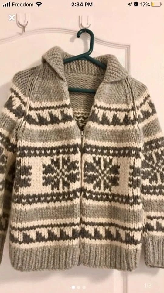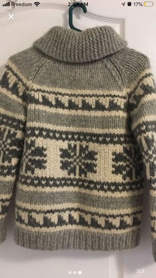 100% Hand Knit Snowflake Patterned Sweater - Size Small/Medium