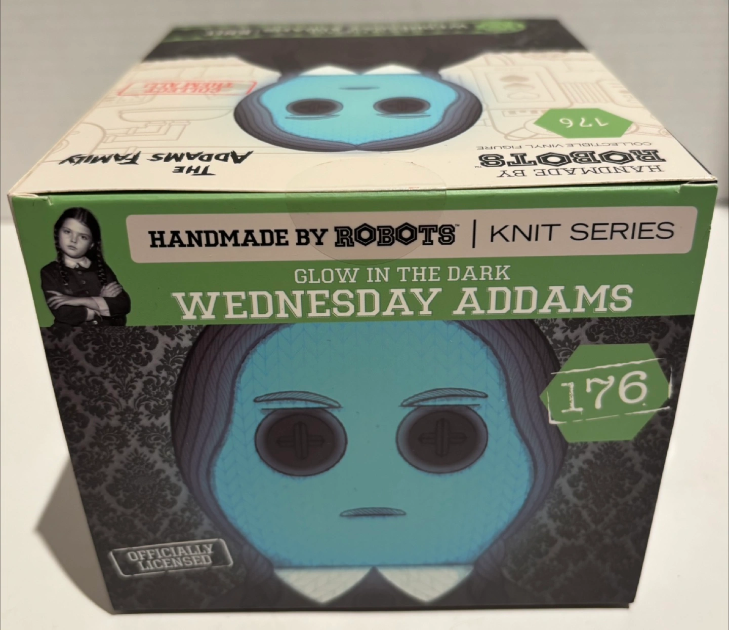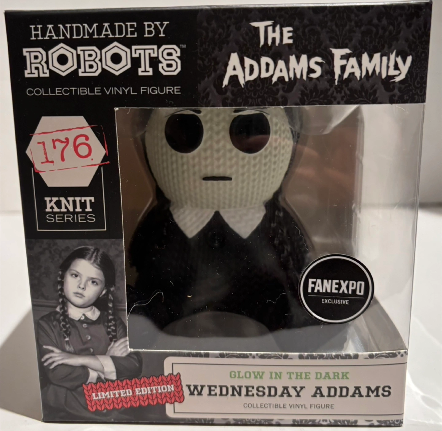 Selling a Handmade by Robots vinyl figure of Wednesday Addams from The Addams Family! It's part of the Knit Series and even glows in the dark. Super cool collectible new vinyl figure, still in its box!