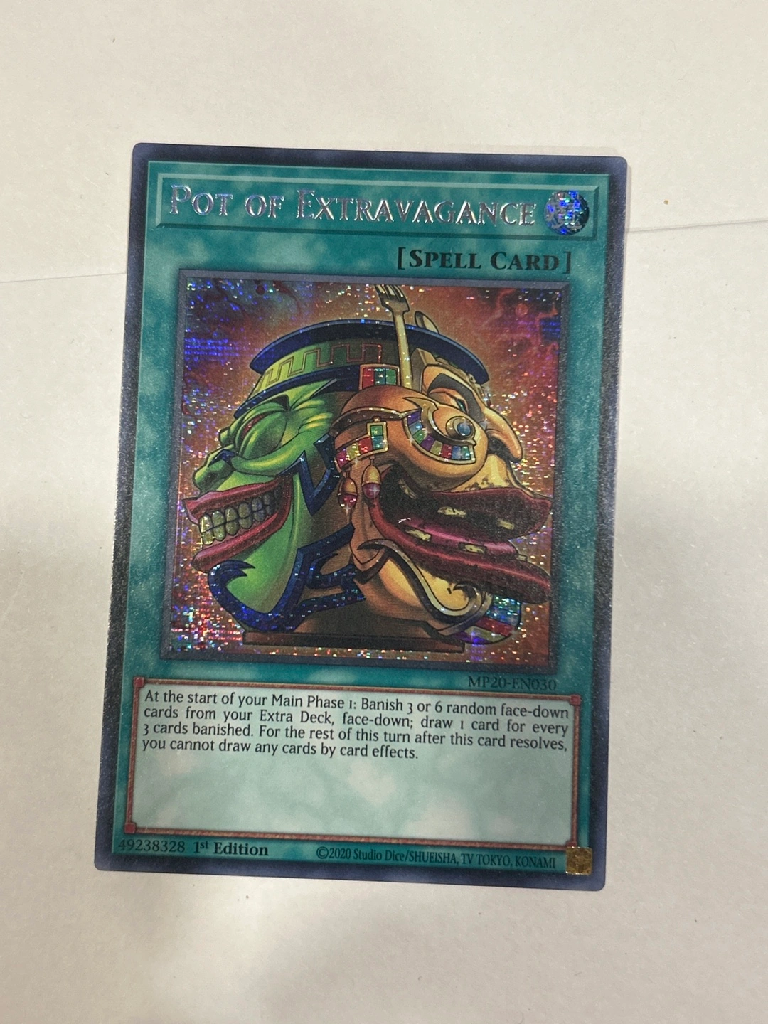 Selling a Yu-Gi-Oh! card, Pot of Extravagance. The card is MP20-EN030. It's a Spell Card from the 1st Edition.