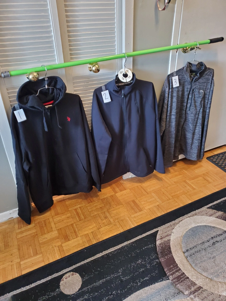 52jackets and sweaters! There's a variety of brands and sizes available, as seen in the photos. Great for layering or everyday wear. Check out the pics and let me know if anything catches your eye!. very good condition only cash price firm no delivery and please message for the price for the page and for the number clothes because I have different prices different colors and different Brands if you want you can come to see all clothes and jackets only cash. I have more Jackets for Winter Autumn Jackets and Rain jackets and more Long Sleeve T'Shirts For Men's and Boys for sale all size different prices different colors and different Brands. I have and app Kijjijji and app Facebook.