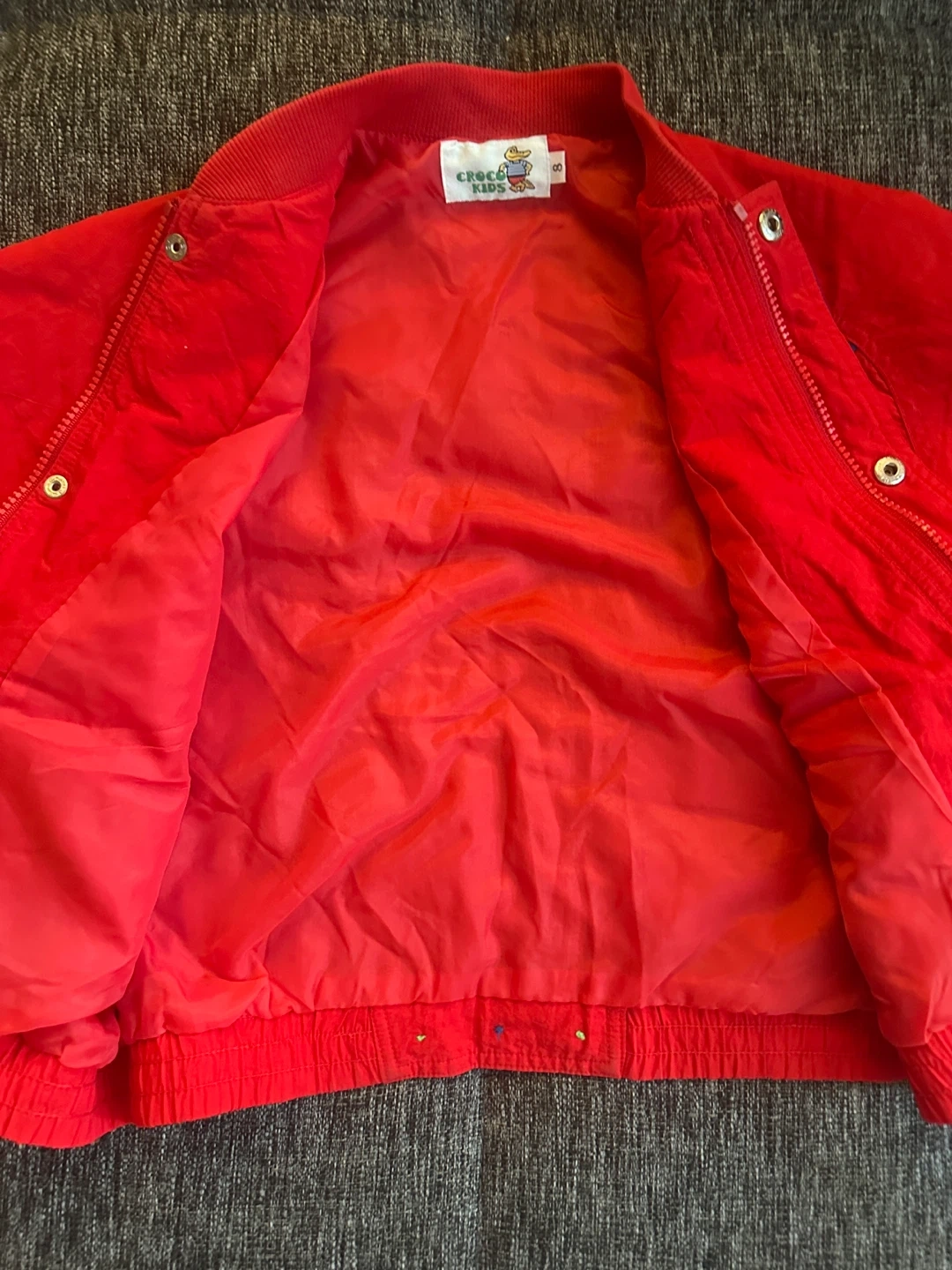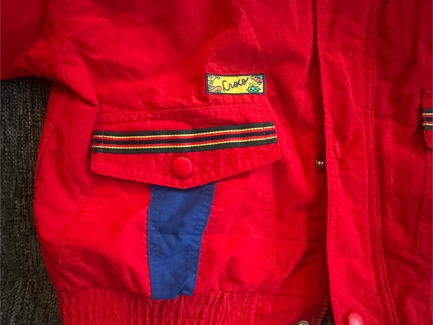 Check out this super rad Croco Kids jacket, perfect for your little one! This vibrant red jacket features blue accents and fun details that make it stand out. The jacket is in a good condition. See my other listings for more kids' winter clothes, thank you.