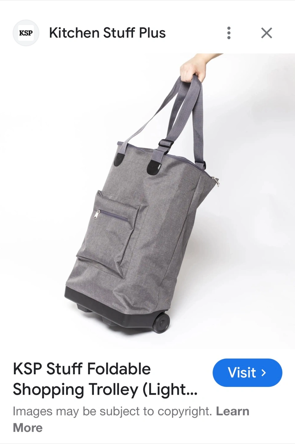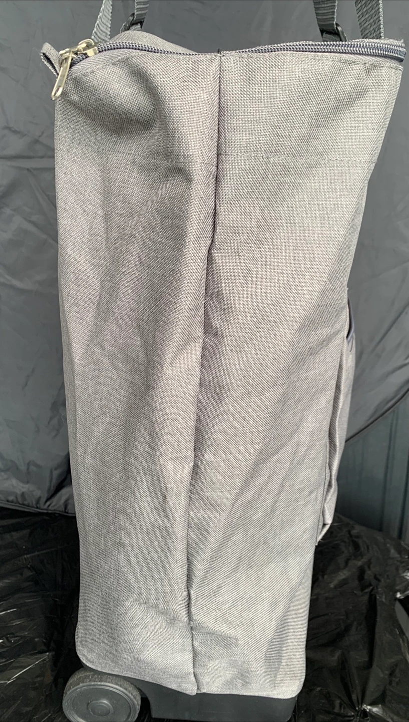 This is a “Kitchen Stuff Plus”foldable shopping trolley in light grey. It's super handy for groceries, trips to the market or anything else you wish to carry! It's in great shape and ready to roll (2 wheels). Exterior bag is Like New, very minimal visible wear inside and underneath. See pic.
