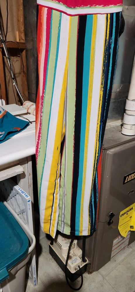 Selling a fun and colourful striped jumpsuit from Athena! It's a size XS and features a vibrant mix of colours in a striped pattern. Perfect for adding a pop of colour to your wardrobe!