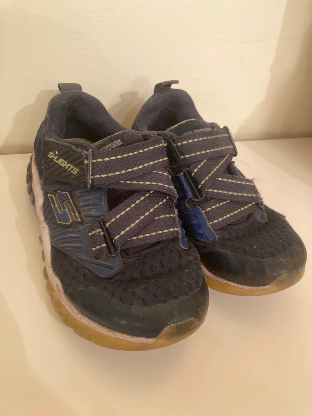 Selling a pair of Skechers S-Lights sneakers for kids! They're in used condition but still have lots of life left. They are a toddler size 11.5 in US/Canada sizing.
