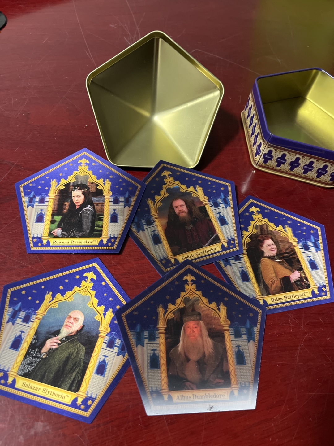 Selling a Harry Potter Chocolate Frog tin! Includes the collectible wizard cards. A must-have for any Harry Potter fan. (The chocolate has already been enjoyed 😊)