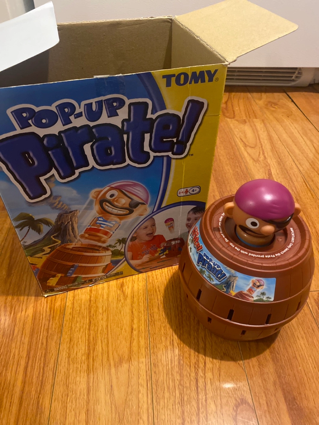 Selling a Tomy Pop-Up Pirate game! It's a fun game for kids age 4 and up. Includes the pirate, barrel, and colourful swords. Also works as a fun drinking game for adults lol