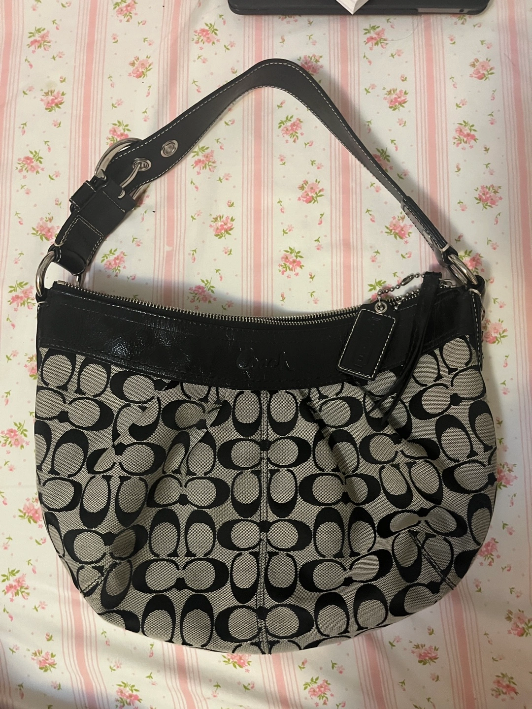 Buy & SellCoach Black/Grey Signature Hobo BagCoach Black/Grey Signature Hobo Bag$50Selling a Coach hobo bag in black and grey signature print! The bag is in good condition and features a black leather trim and silver hardware.ConditionGoodBrandCoachWHERE TO MEETPape/CosburnView MapSELLERverifiedAliciaPape Village872 reviews2 chats·2 favorites·30 viewsSEND CHAT TO SELLERHi Alicia! I’m interested in your listing.Hi Alicia! I’m interested in your listing.Get the Karrot app to chatSign In to chat