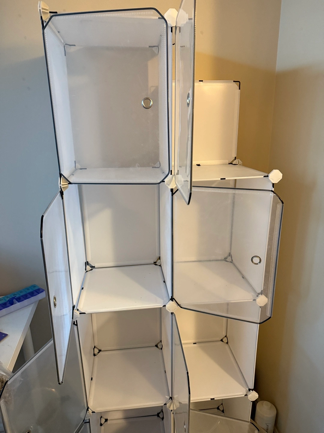 Giving away a modular cube storage shelf! It's white and has multiple cubes for storage. Perfect for organizing your space!