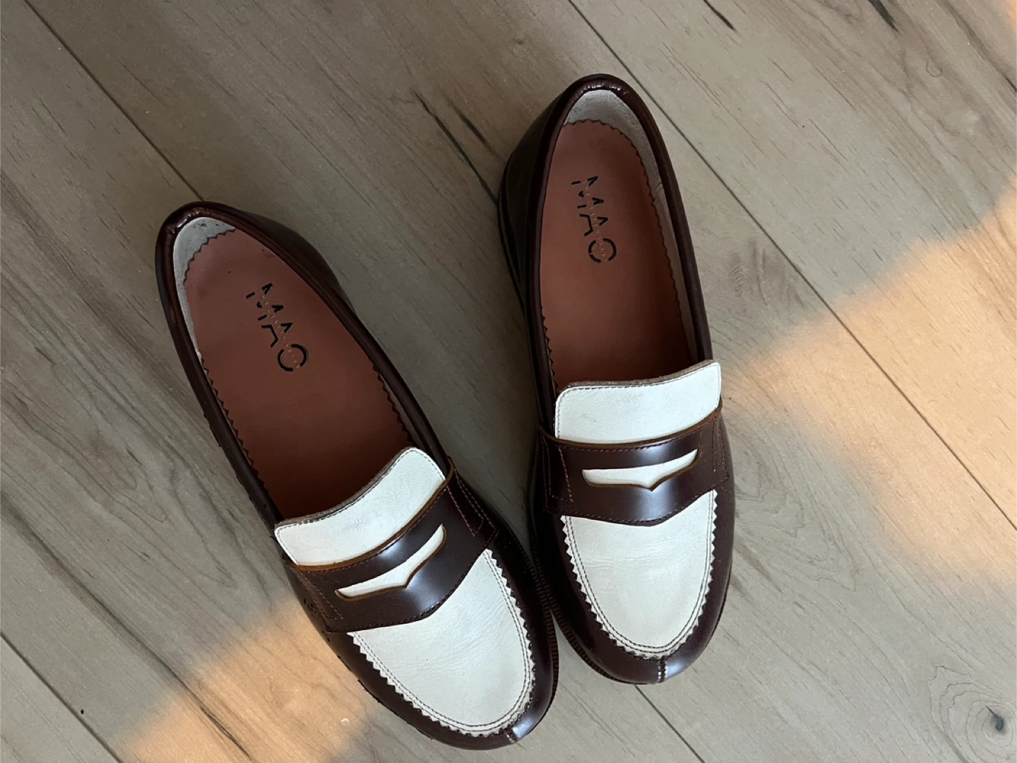 Reddish Brown and white real leather loafers. Barely worn and in great condition. These are handmade by an artisan so it’s very well made and sturdy.
