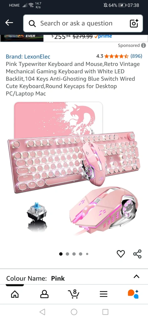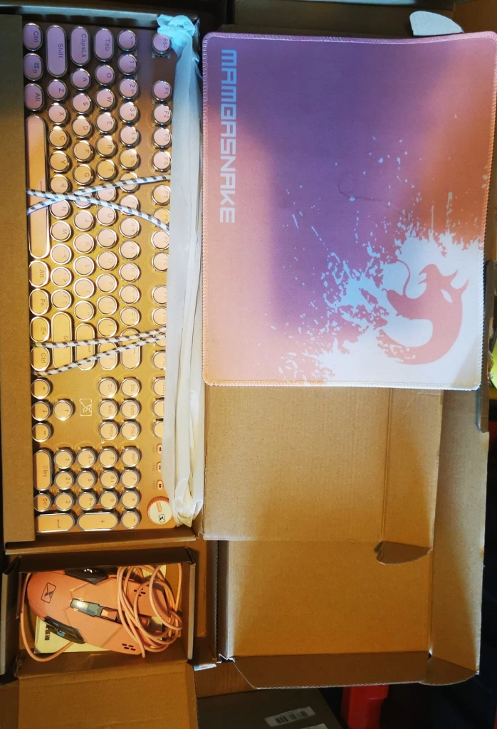 Selling a LexonElec pink typewriter-style keyboard and mouse set! This retro vintage mechanical gaming keyboard comes with a white LED backlight and 104 anti-ghosting blue switch wired keys. It also includes a cute keyboard with round keycaps for desktop PCs and laptops. The set is in excellent condition and includes the original box!