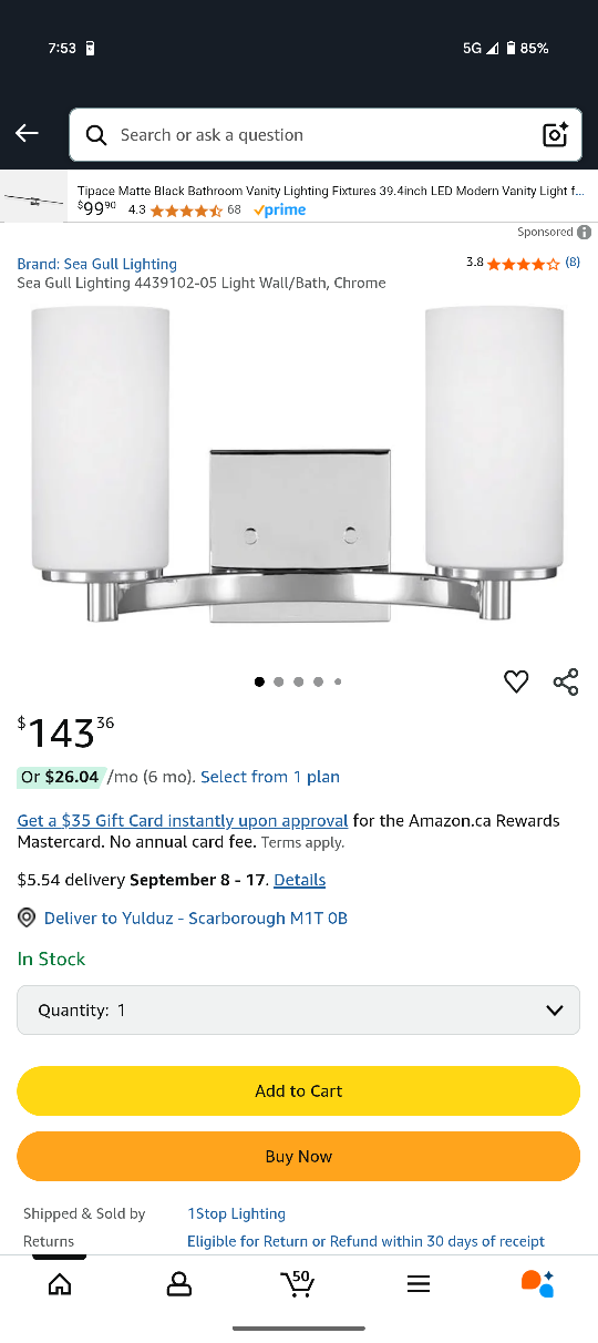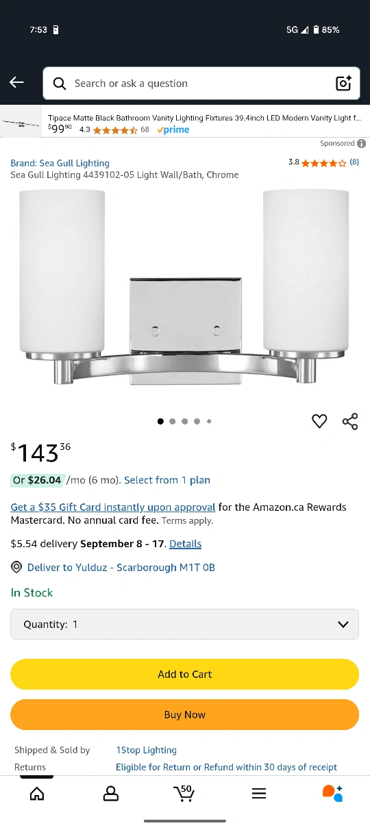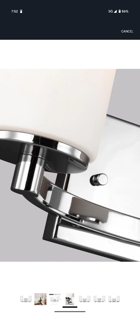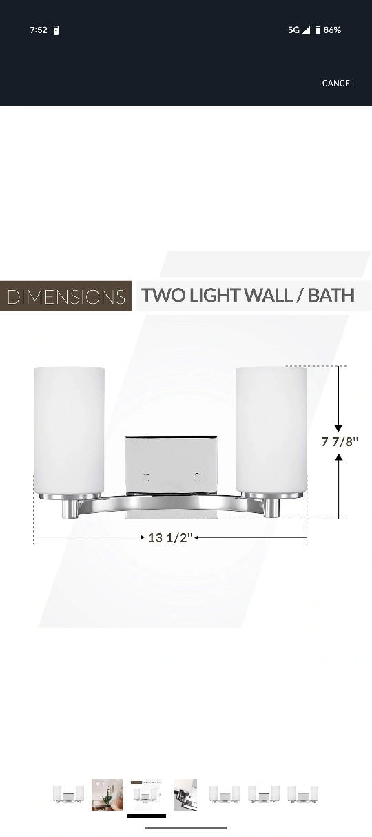 Add a touch of modern elegance to your bathroom with this Sea Gull Lighting two-light wall/bath fixture! The chrome finish and cylindrical white glass shades offer a clean and sophisticated look. It measures 13 1/2" wide and 7 7/8" tall. Originally bought for $143.36