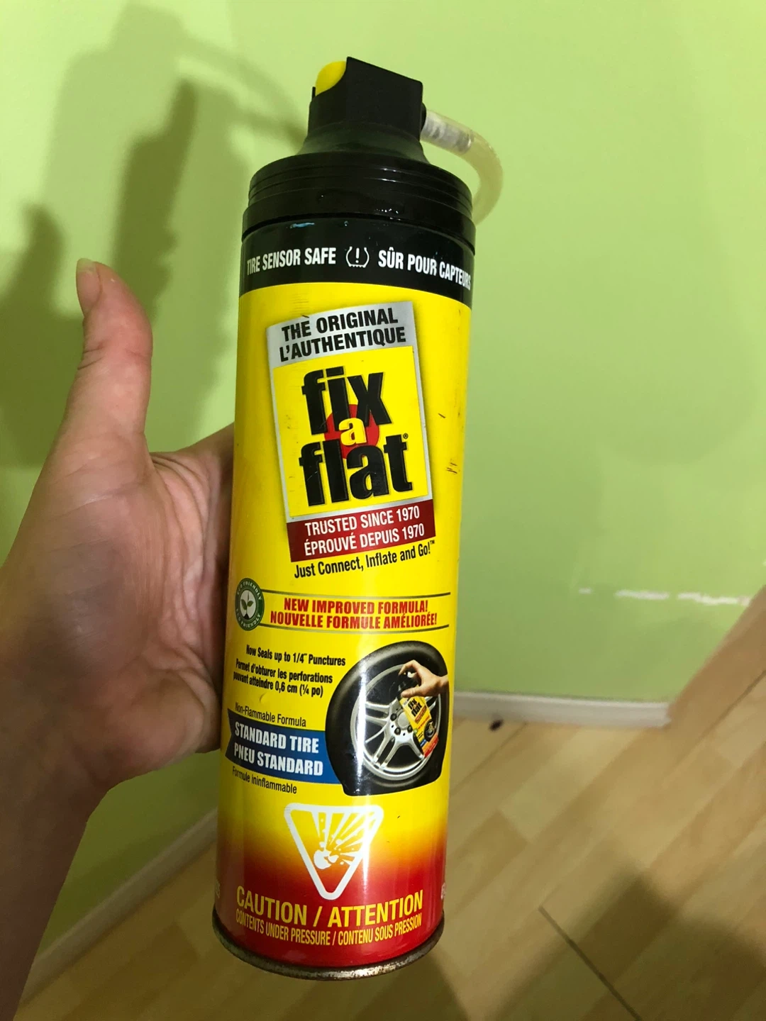 Selling a can of Fix-A-Flat tire inflator. It's the original formula and trusted since 1970. Just connect, inflate, and go! It seals up to 1/4" punctures with a new improved formula.