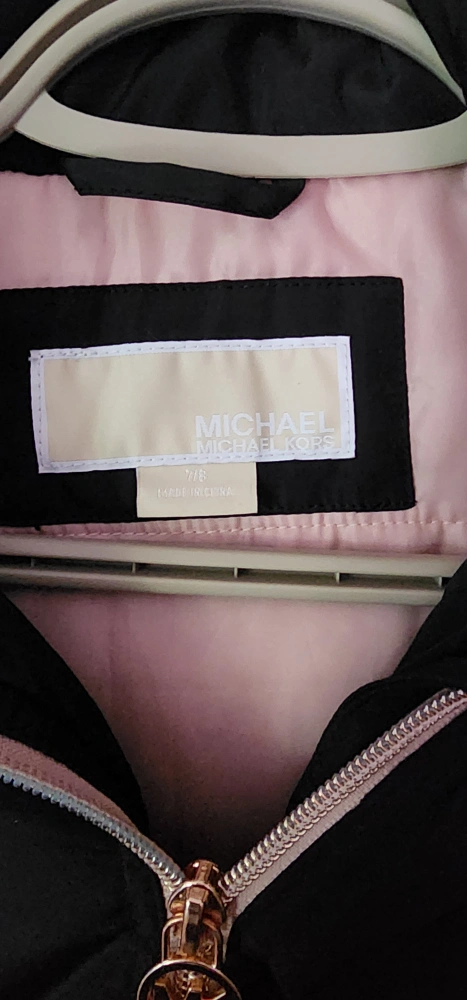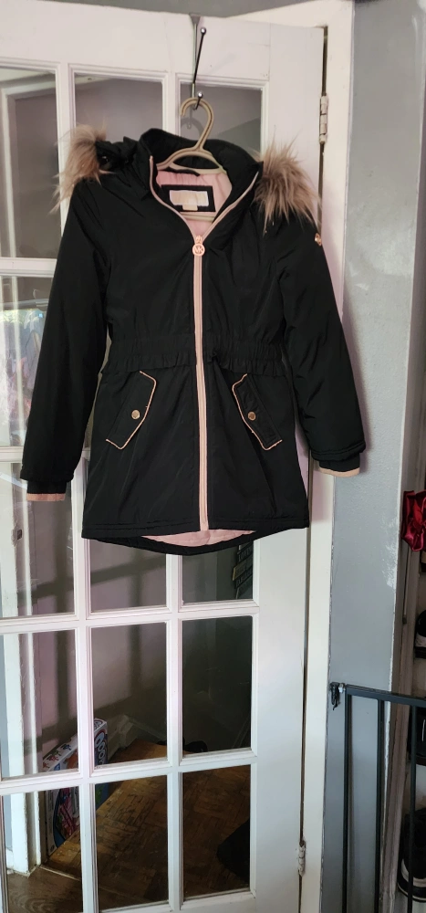 48A super cute Michael Michael Kors coat for girls! It's black with a light pink lining and faux fur trim on the hood. Size is 7/8. Perfect for keeping your little one warm and stylish this winter